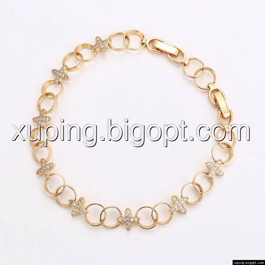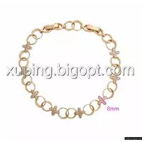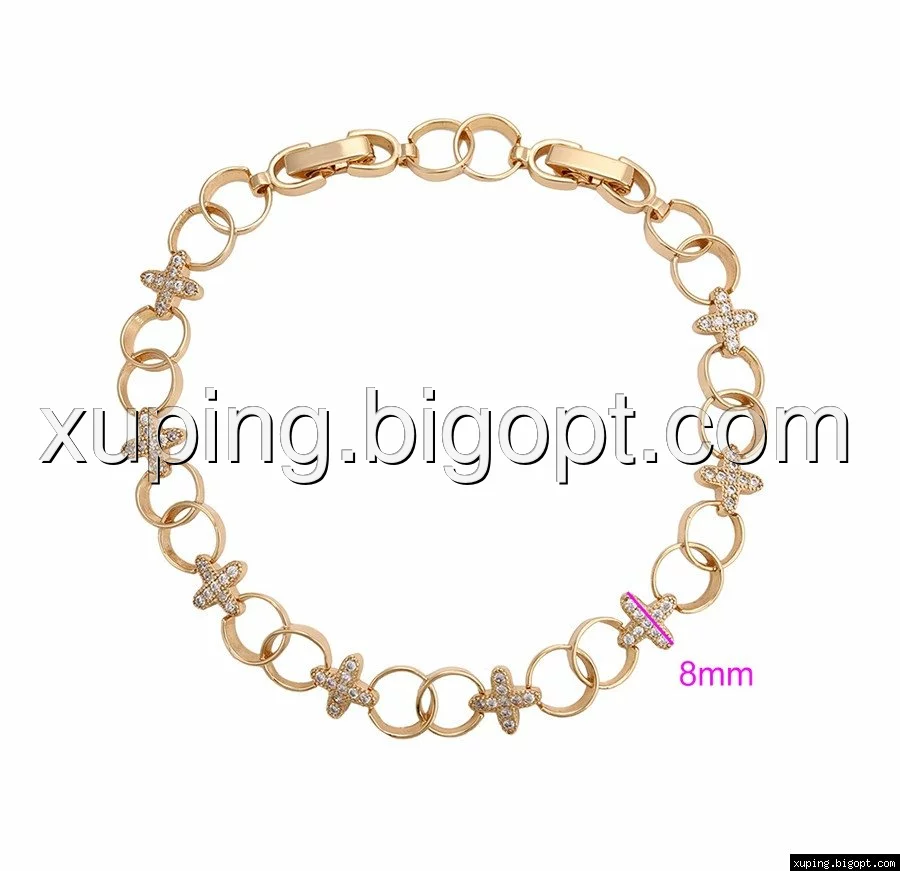 Браслет выполнен из медицинского сплава, который  изготовляется на основе латуни. Сверху бижутерия покрыта позолотой  для того чтобы придать ей насыщенный цвет, яркий блеск и максимальное сходство с золотом. Кроме того, в качестве декора мастера используют цирконий, который крепится при помощи крапанов. Как известно этот камень широко применяется в ювелирном искусстве, так как он обладает восхитительным блеском и прочностью. Данная бижутерия представлена заводом-производителем марки «Xuping» – все изделия оригинальны и имеют одинаково высокое качество.