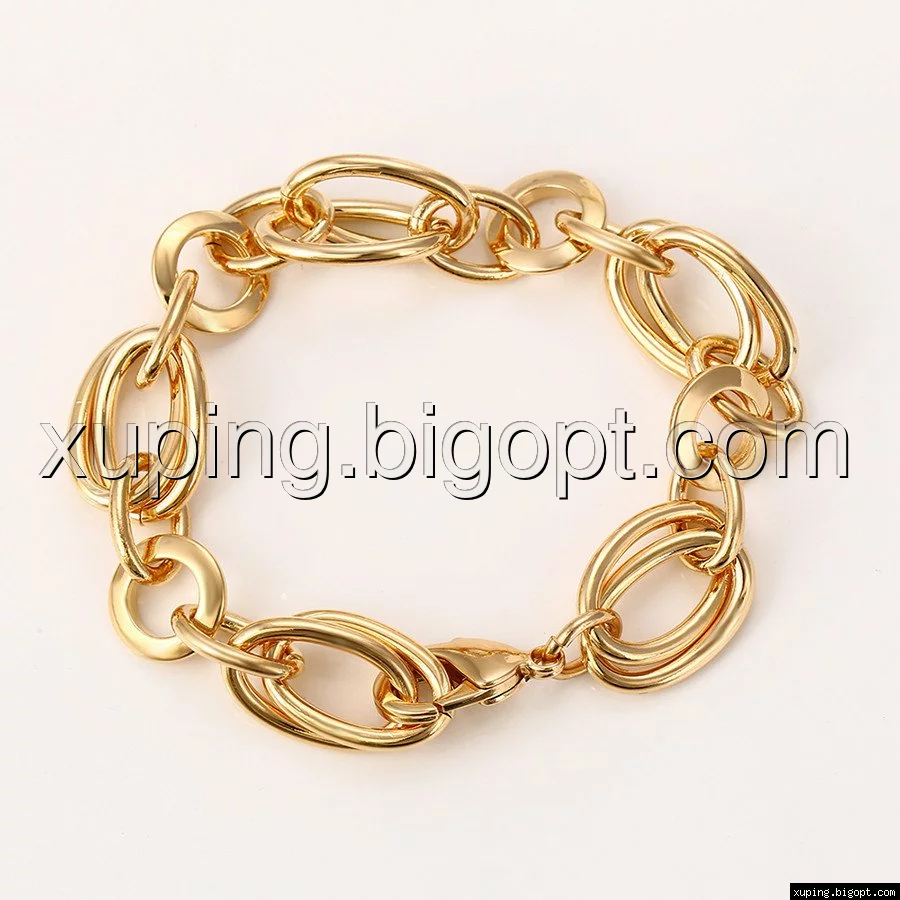 Браслет выполнен из медицинского сплава на основе латуни с добавлением легирующих елементов, с целью улучшения каких-либо его свойств, например коррозионной стойкости или прочности. Такой сплав не вызывает аллергии, не вступает в реакцию с потом человека, не меняет свои свойства под воздействием соленой воды и солнца. Поверхность изделия покрыта золотом 18 карата.