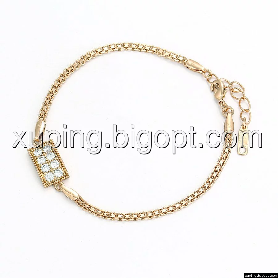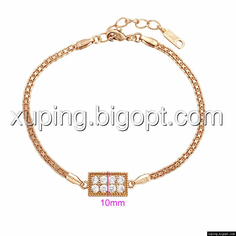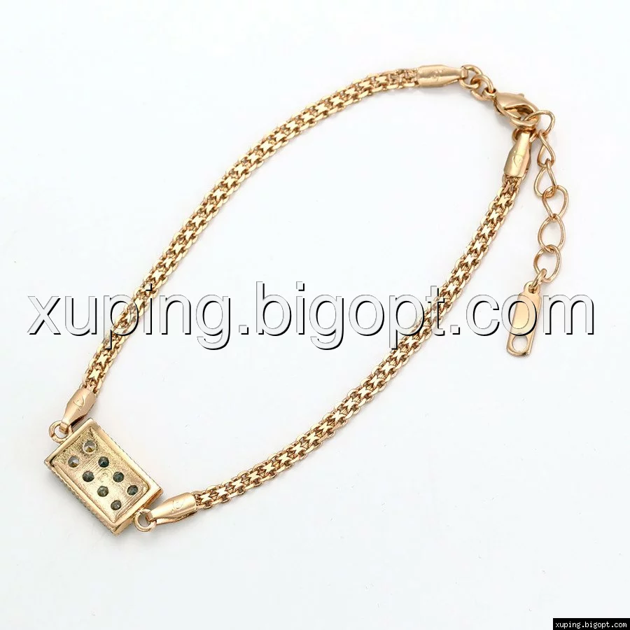Браслет выполнен из медицинского сплава, который  изготовляется на основе латуни. Сверху бижутерия покрыта позолотой  для того чтобы придать ей насыщенный цвет, яркий блеск и максимальное сходство с золотом. Кроме того, в качестве декора мастера используют цирконий, который крепится при помощи крапанов. Как известно этот камень широко применяется в ювелирном искусстве, так как он обладает восхитительным блеском и прочностью. Данная бижутерия представлена заводом-производителем марки «Xuping» – все изделия оригинальны и имеют одинаково высокое качество.