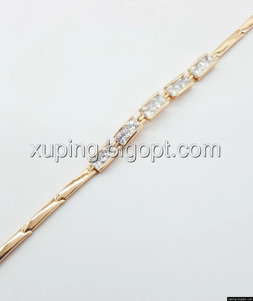 Браслет выполнен из медицинского сплава, который  изготовляется на основе латуни. Сверху бижутерия покрыта позолотой  для того чтобы придать ей насыщенный цвет, яркий блеск и максимальное сходство с золотом. Кроме того, в качестве декора мастера используют цирконий, который крепится при помощи крапанов. Как известно этот камень широко применяется в ювелирном искусстве, так как он обладает восхитительным блеском и прочностью. Данная бижутерия представлена заводом-производителем марки «Xuping» – все изделия оригинальны и имеют одинаково высокое качество.
