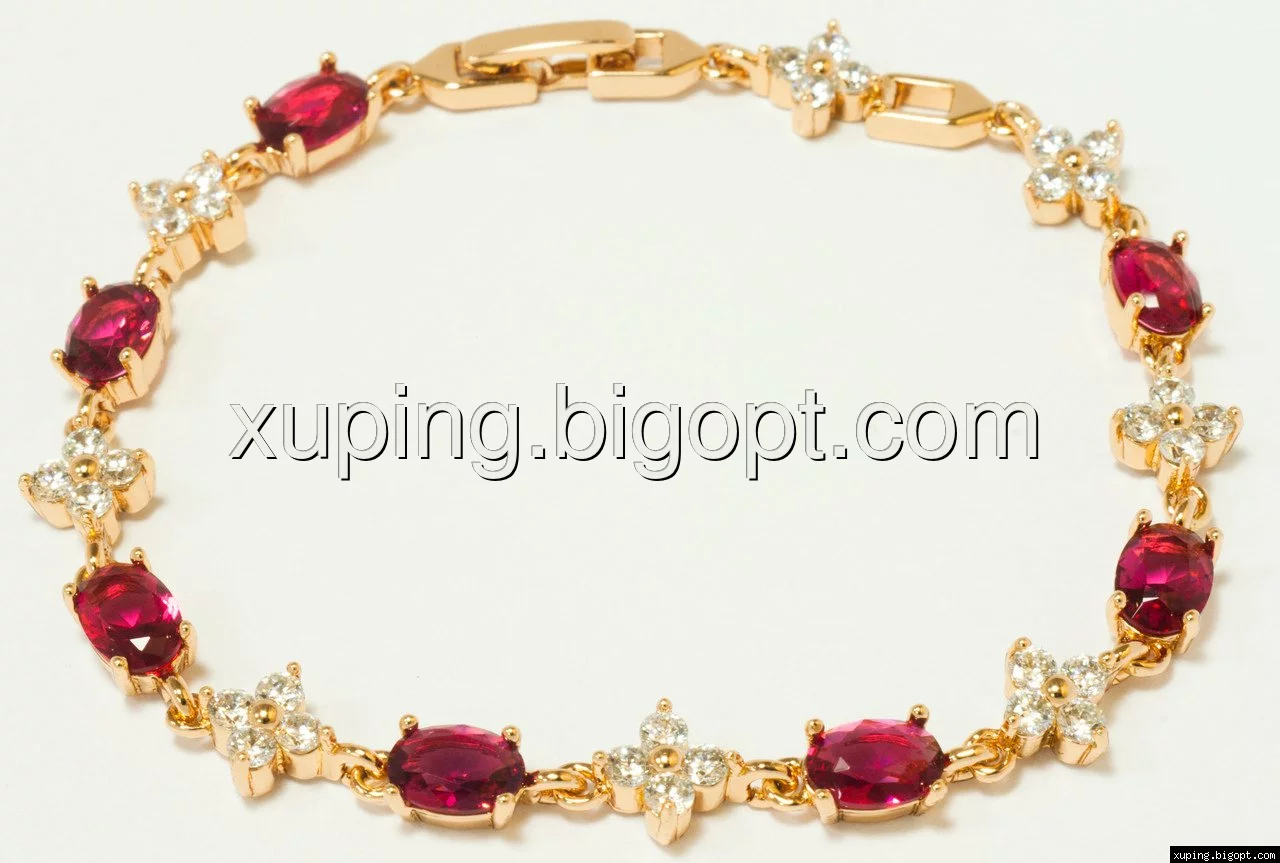 Браслет позолота с цирконием под рубин, 6мм, р.17, р.19