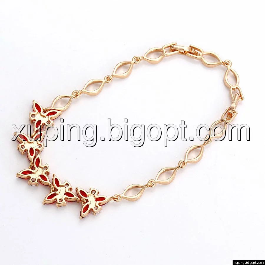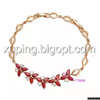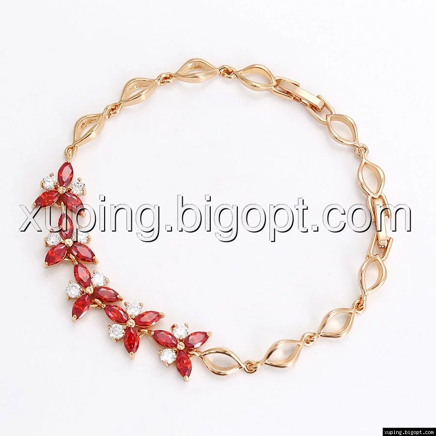 Браслет выполнен из медицинского сплава, который  изготовляется на основе латуни. Сверху бижутерия покрыта позолотой  для того чтобы придать ей насыщенный цвет, яркий блеск и максимальное сходство с золотом. Кроме того, в качестве декора мастера используют цирконий, который крепится при помощи крапанов. Как известно этот камень широко применяется в ювелирном искусстве, так как он обладает восхитительным блеском и прочностью. Данная бижутерия представлена заводом-производителем марки «Xuping» – все изделия оригинальны и имеют одинаково высокое качество.