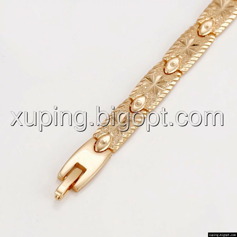 Браслет выполнен из медицинского сплава на основе латуни с добавлением легирующих елементов, с целью улучшения каких-либо его свойств, например коррозионной стойкости или прочности. Такой сплав не вызывает аллергии, не вступает в реакцию с потом человека, не меняет свои свойства под воздействием соленой воды и солнца. Поверхность изделия покрыта золотом 18 карата.