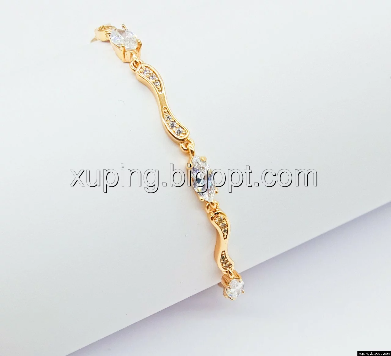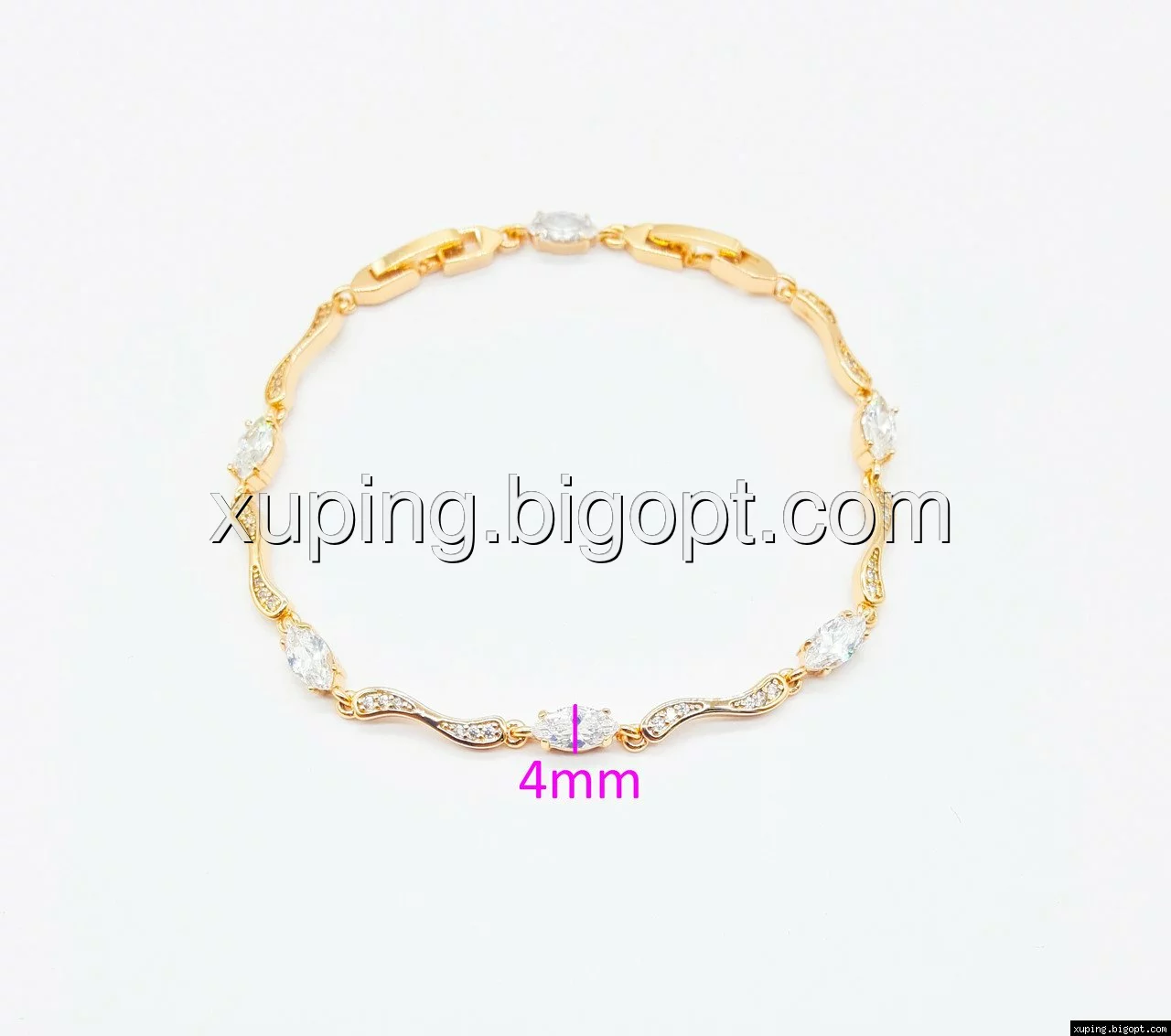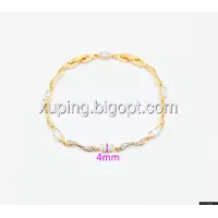 Браслет выполнен из медицинского сплава, который  изготовляется на основе латуни. Сверху бижутерия покрыта позолотой  для того чтобы придать ей насыщенный цвет, яркий блеск и максимальное сходство с золотом. Кроме того, в качестве декора мастера используют цирконий, который крепится при помощи крапанов. Как известно этот камень широко применяется в ювелирном искусстве, так как он обладает восхитительным блеском и прочностью. Данная бижутерия представлена заводом-производителем марки «Xuping» – все изделия оригинальны и имеют одинаково высокое качество.