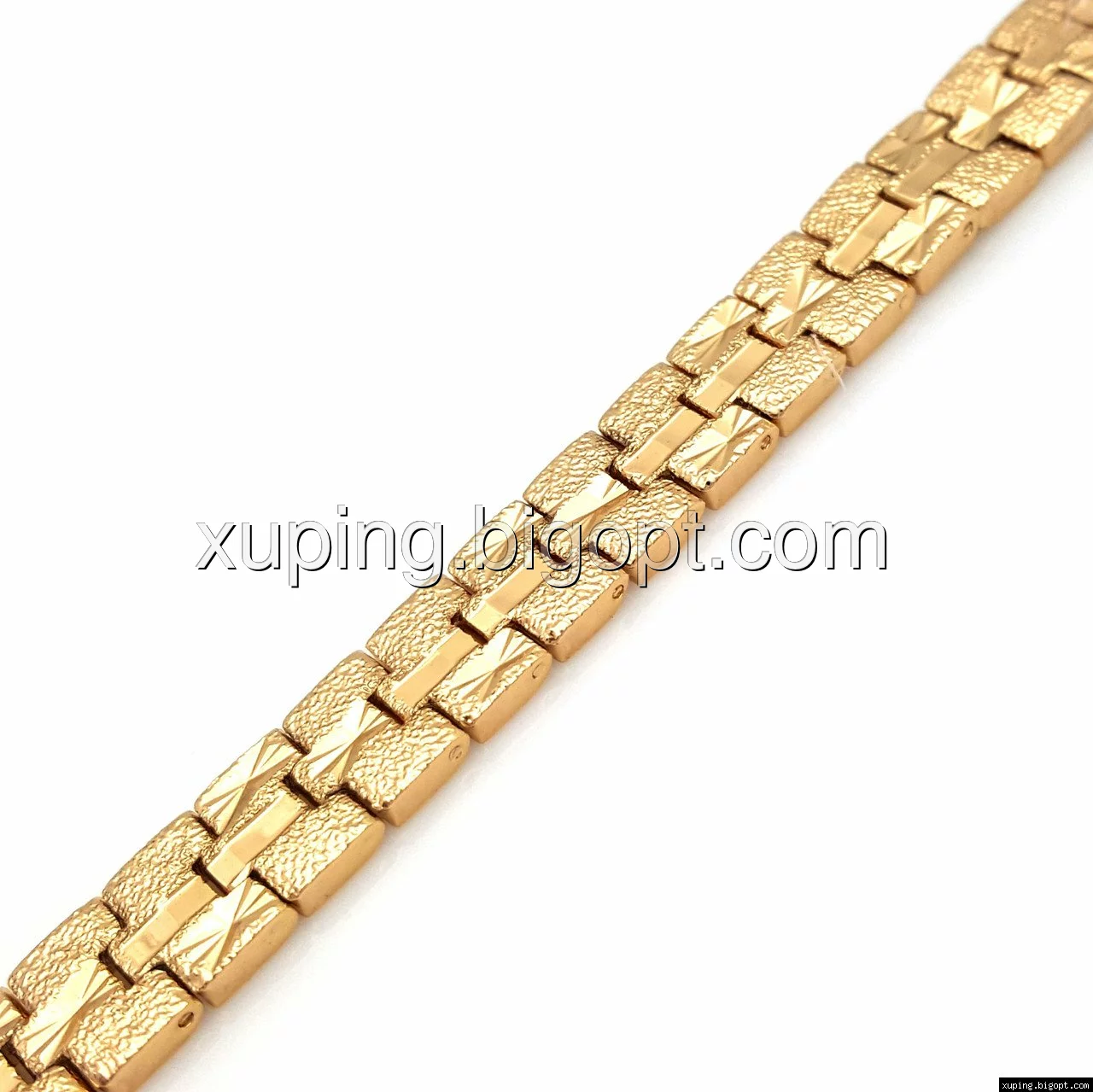 Браслет выполнен из медицинского сплава, который  изготовляется на основе латуни. Сверху бижутерия покрыта позолотой  для того чтобы придать ей насыщенный цвет, яркий блеск и максимальное сходство с золотом. Кроме того, в качестве декора мастера используют цирконий, который крепится при помощи клапанов. Как известно этот камень широко применяется в ювелирном искусстве, так как он обладает восхитительным блеском и прочностью. Данная бижутерия представлена заводом-производителем марки «Xuping» – все изделия оригинальны и имеют одинаково высокое качество.