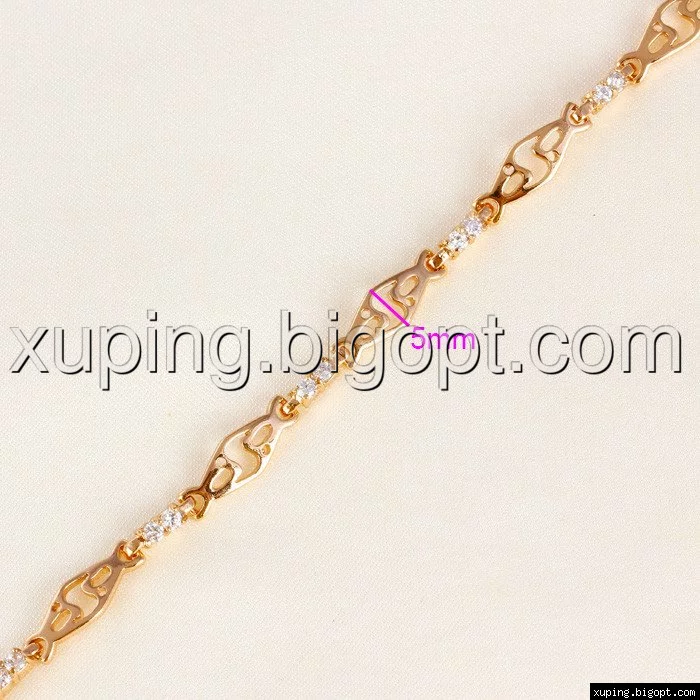 Браслет выполнен из медицинского сплава на основе латуни с добавлением легирующих елементов, с целью улучшения каких-либо его свойств, например коррозионной стойкости или прочности. Такой сплав не вызывает аллергии, не вступает в реакцию с потом человека, не меняет свои свойства под воздействием соленой воды и солнца. Поверхность изделия покрыта золотом 14 карата.