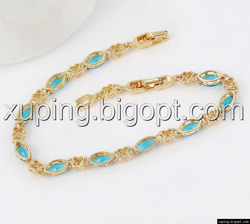 Браслет с бирюзовым цирконием, р.18, р.20,5, позолота