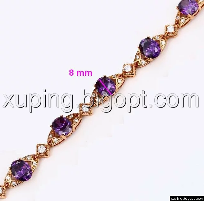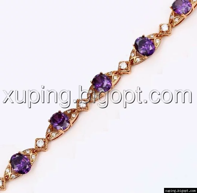 Браслет с фиолетовым цирконием , р.17, р.19.5, позолота