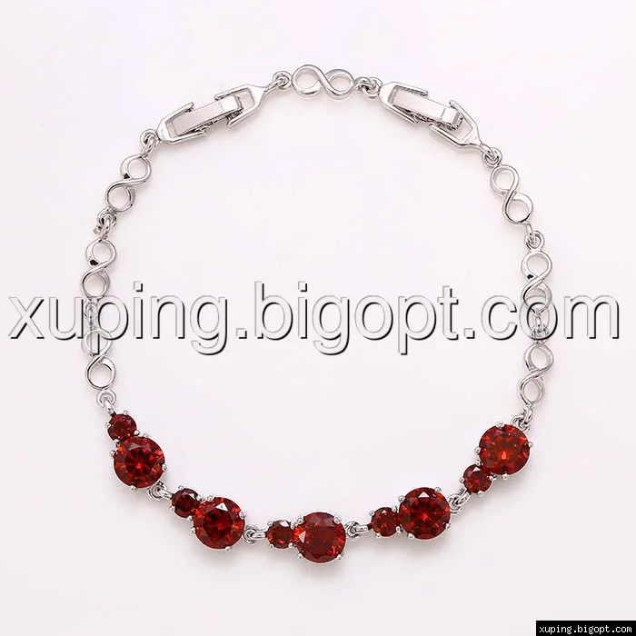 Браслет з червоним цирконієм, р. 17.5, р. 20.5, родій
