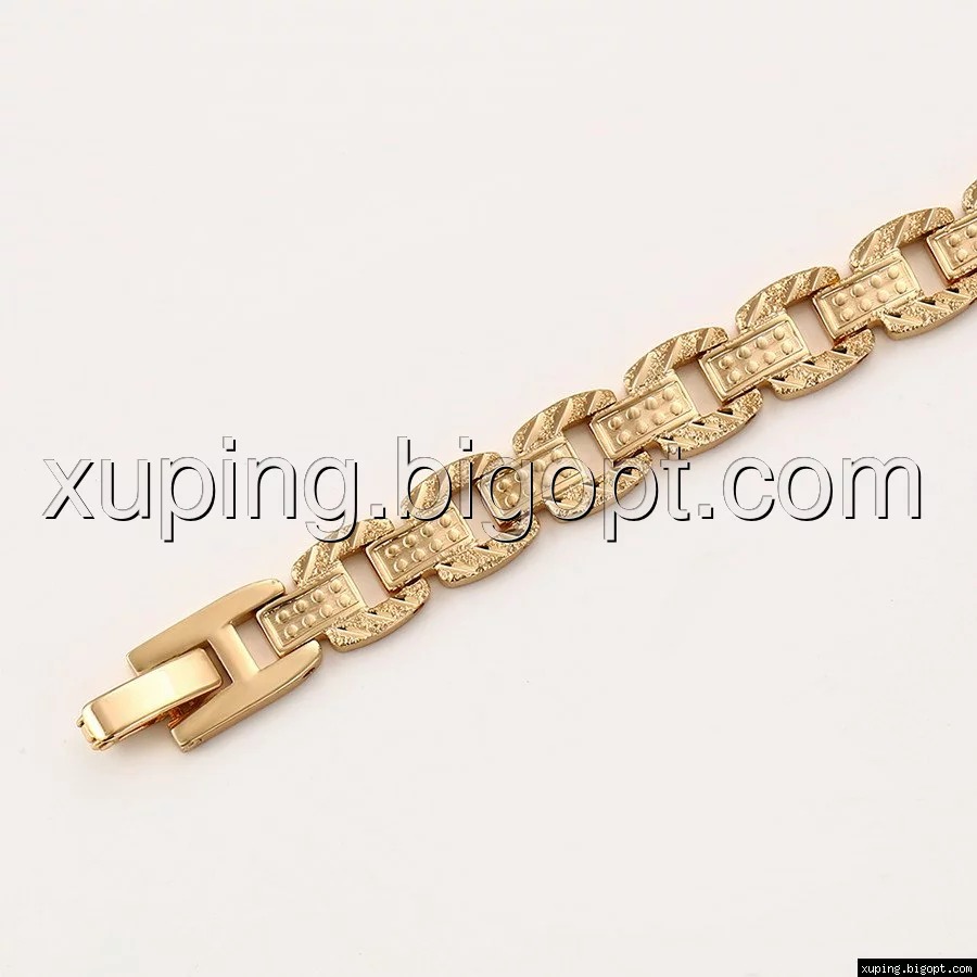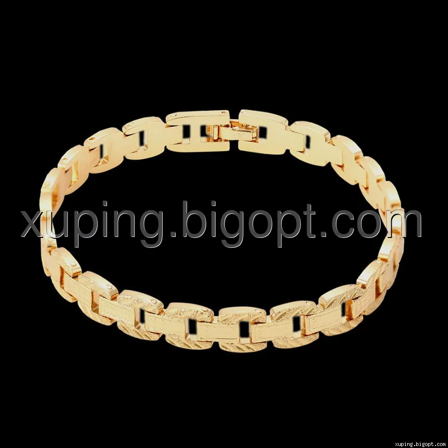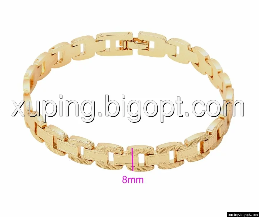 Браслет выполнен из медицинского сплава на основе латуни с добавлением легирующих елементов, с целью улучшения каких-либо его свойств, например коррозионной стойкости или прочности. Такой сплав не вызывает аллергии, не вступает в реакцию с потом человека, не меняет свои свойства под воздействием соленой воды и солнца. Поверхность изделия покрыта золотом 18 карата.