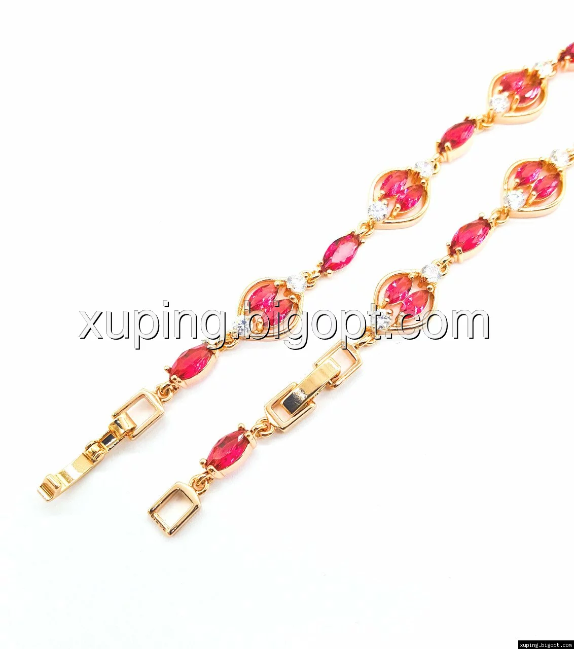 Браслет выполнен из медицинского сплава, который  изготовляется на основе латуни. Сверху бижутерия покрыта позолотой  для того чтобы придать ей насыщенный цвет, яркий блеск и максимальное сходство с золотом. Кроме того, в качестве декора мастера используют цирконий, который крепится при помощи крапанов. Как известно этот камень широко применяется в ювелирном искусстве, так как он обладает восхитительным блеском и прочностью. Данная бижутерия представлена заводом-производителем марки «Xuping» – все изделия оригинальны и имеют одинаково высокое качество.