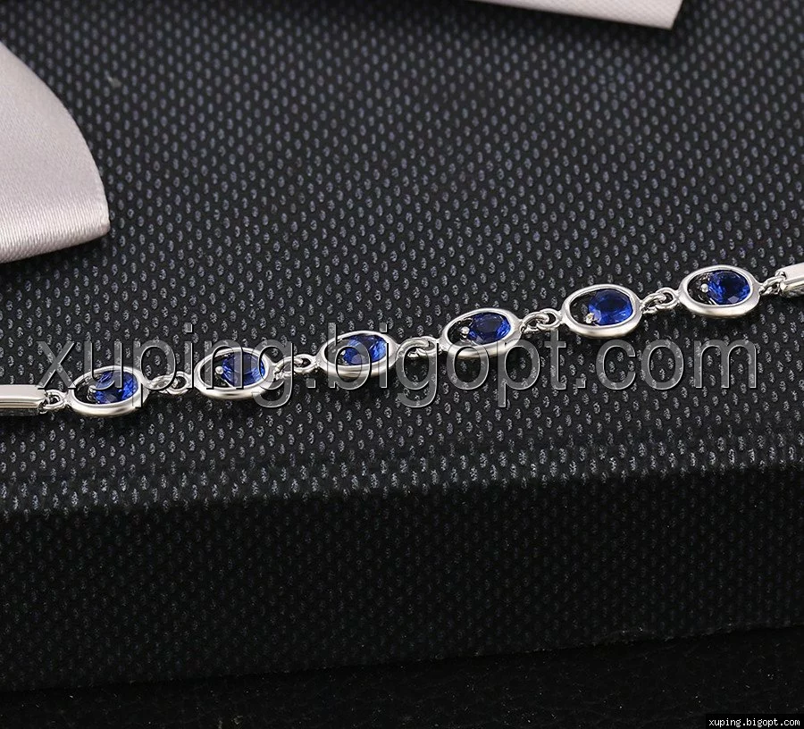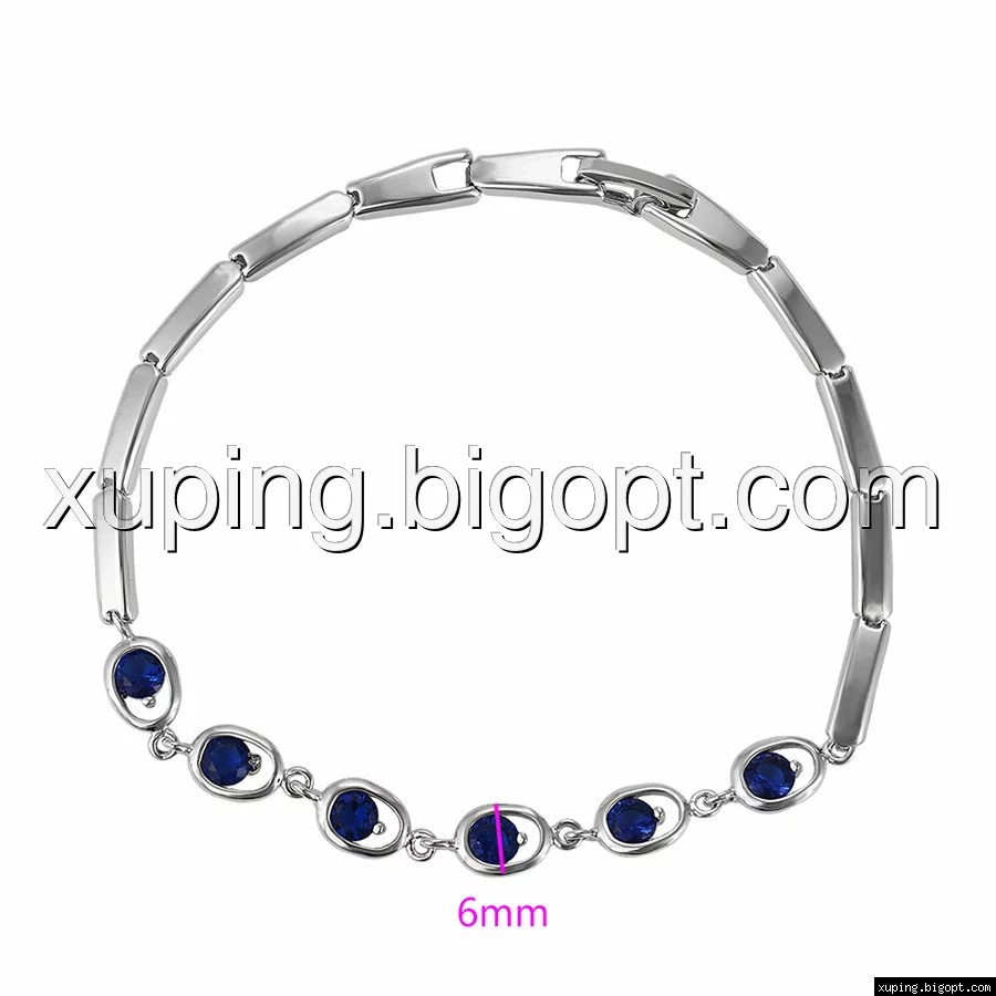 Браслет родій, Шість камінців з синім цирконієм, р.18, р.19