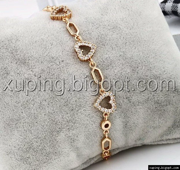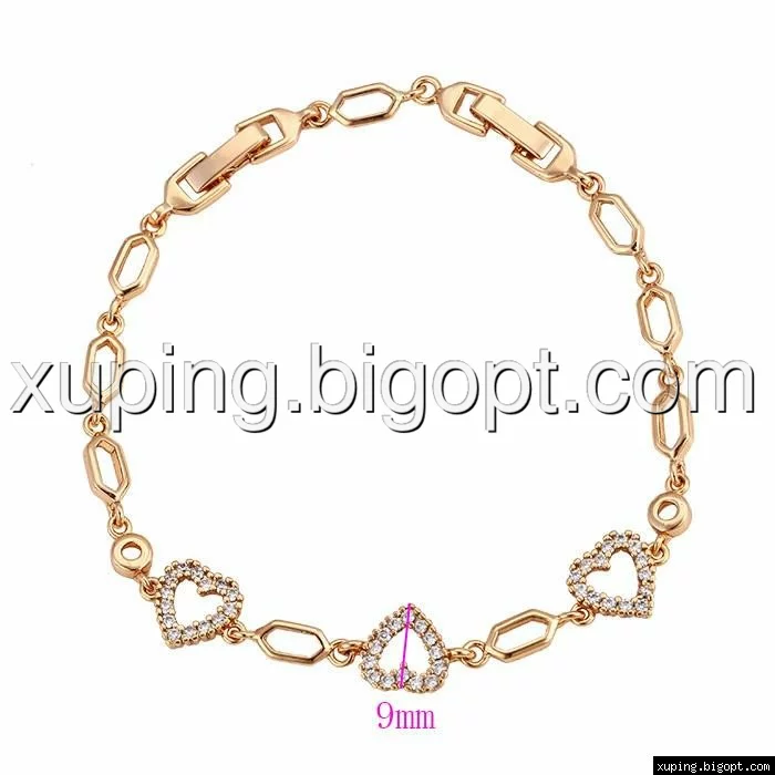 Браслет Сердечки с цирконием, позолота, р.17,5, р.20