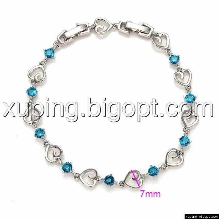 Браслет Серце з цирконієм під топаз,родій, р. 18, р. 20,5