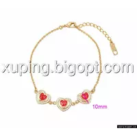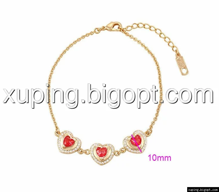 Браслет Три сердца с цирконием под рубин, р.18-22, позолота