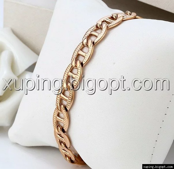 Браслет выполнен из медицинского сплава на основе латуни с добавлением легирующих елементов, с целью улучшения каких-либо его свойств, например коррозионной стойкости или прочности. Такой сплав не вызывает аллергии, не вступает в реакцию с потом человека, не меняет свои свойства под воздействием соленой воды и солнца. Поверхность изделия покрыта золотом 14 карата.