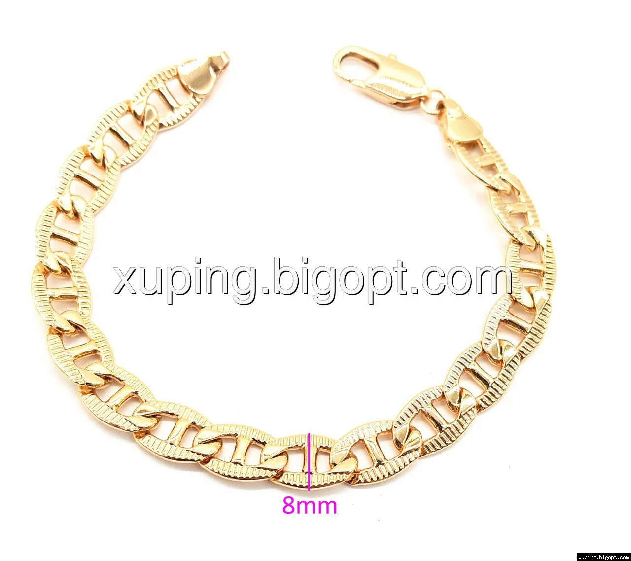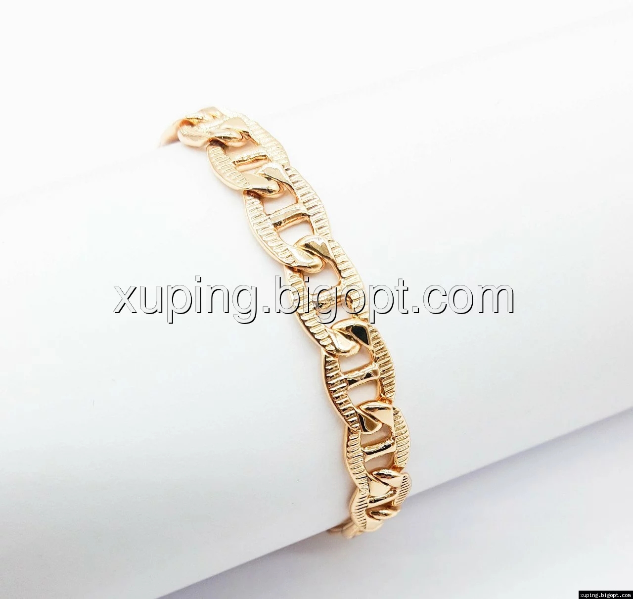 Браслет выполнен из медицинского сплава, который  изготовляется на основе латуни. Сверху бижутерия покрыта позолотой  для того чтобы придать ей насыщенный цвет, яркий блеск и максимальное сходство с золотом. Кроме того, в качестве декора мастера используют цирконий, который крепится при помощи крапанов. Как известно этот камень широко применяется в ювелирном искусстве, так как он обладает восхитительным блеском и прочностью. Данная бижутерия представлена заводом-производителем марки «Xuping» – все изделия оригинальны и имеют одинаково высокое качество.