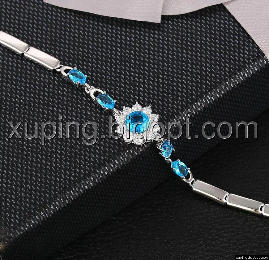 Браслет родій, Квіточка з блакитним цирконієм, р. 18,5, р. 19,5