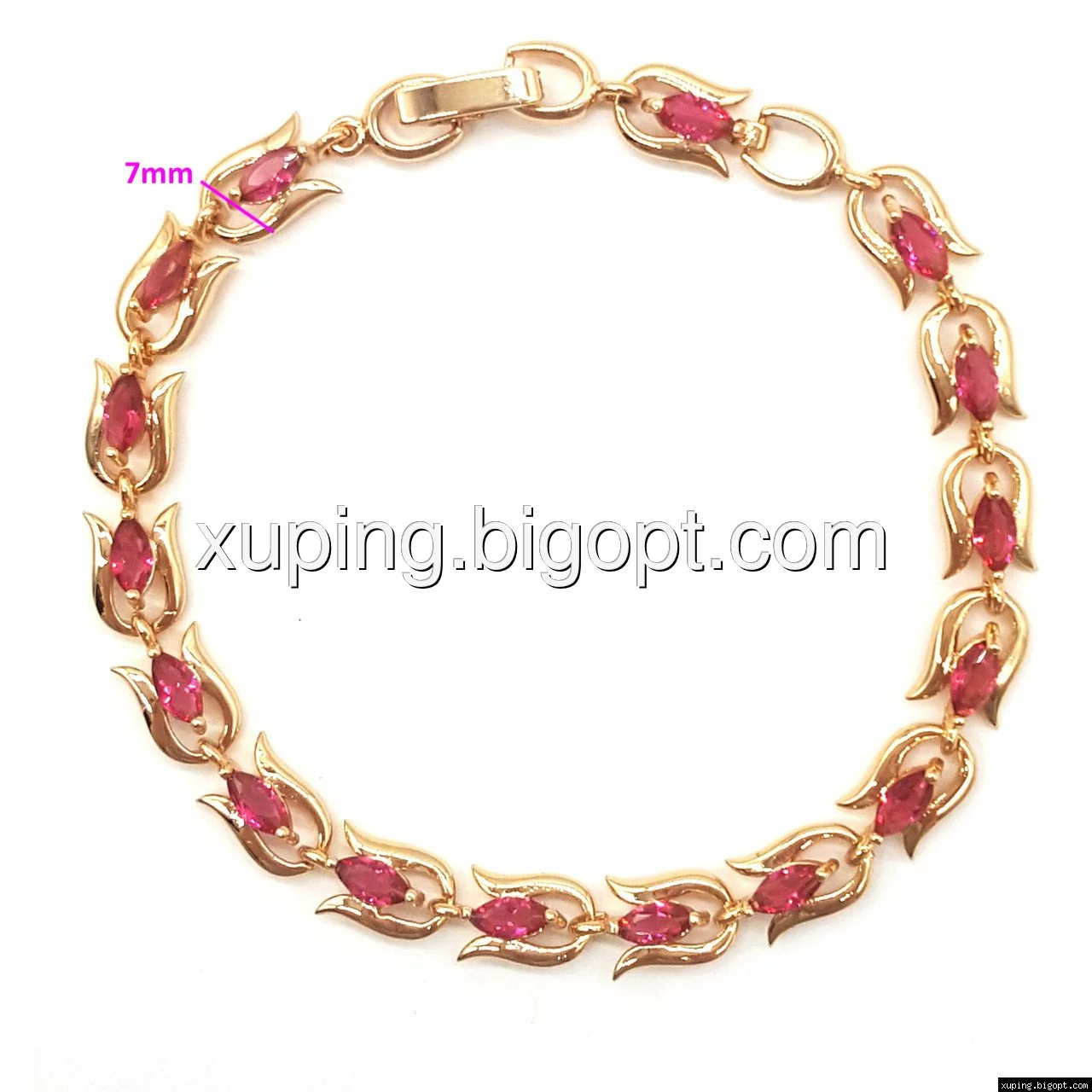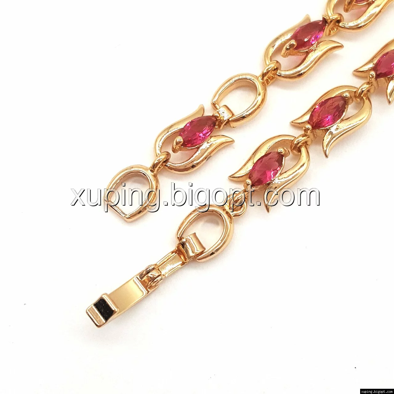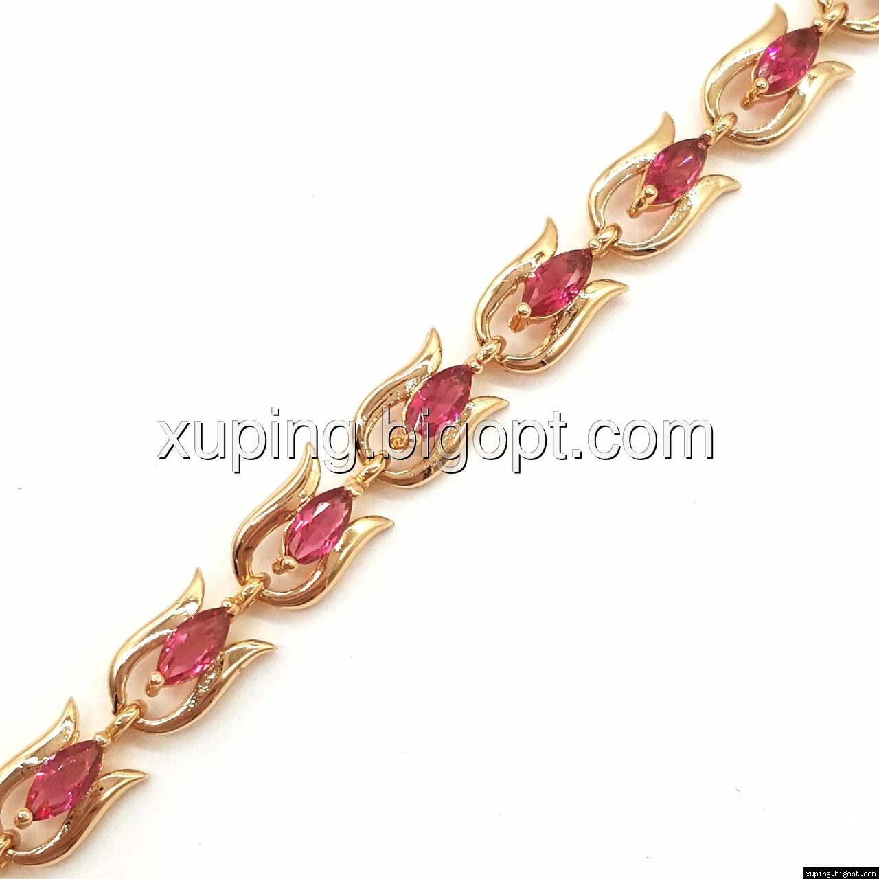 Браслет выполнен из медицинского сплава, который  изготовляется на основе латуни. Сверху бижутерия покрыта позолотой  для того чтобы придать ей насыщенный цвет, яркий блеск и максимальное сходство с золотом. Кроме того, в качестве декора мастера используют цирконий, который крепится при помощи крапанов. Как известно этот камень широко применяется в ювелирном искусстве, так как он обладает восхитительным блеском и прочностью. Данная бижутерия представлена заводом-производителем марки «Xuping» – все изделия оригинальны и имеют одинаково высокое качество.