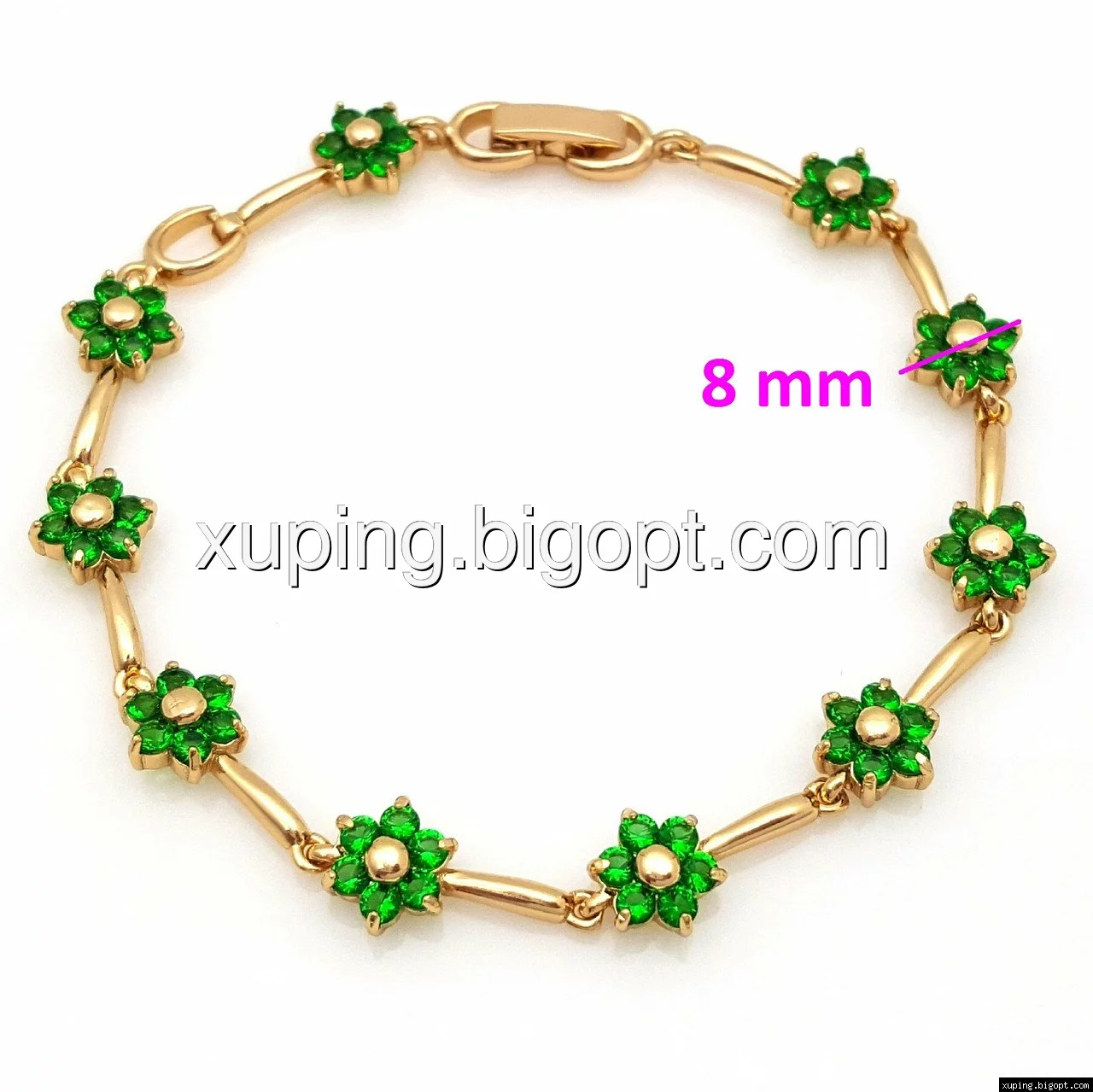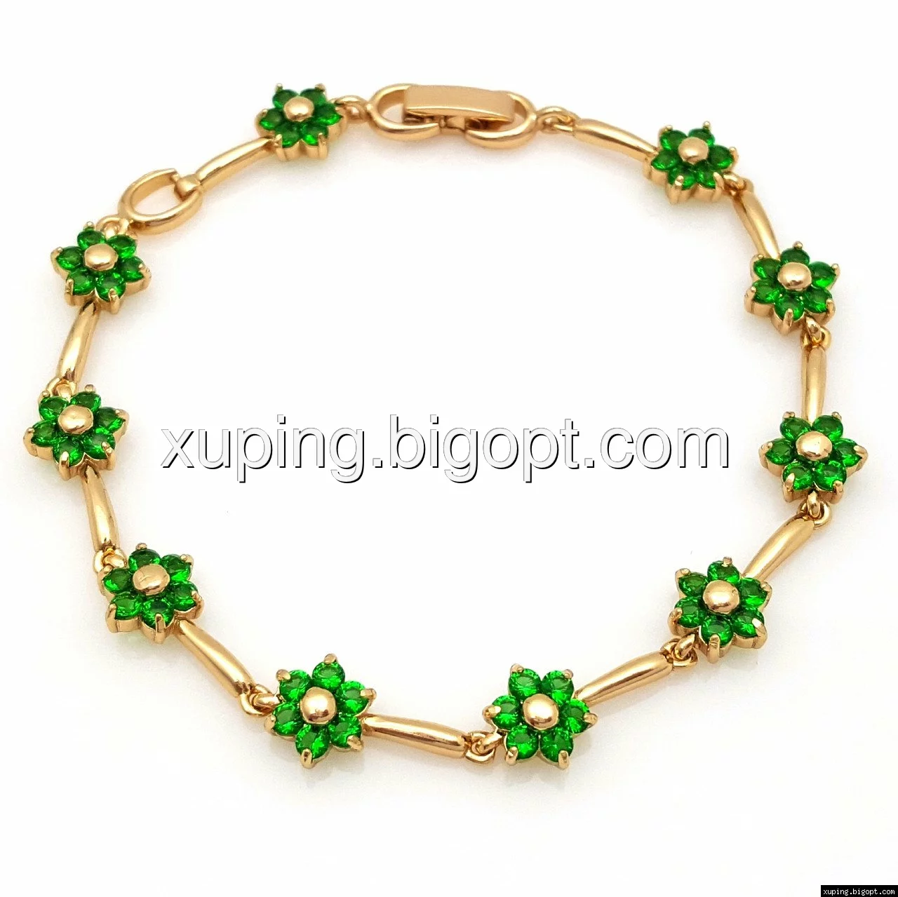 Браслет выполнен из медицинского сплава, который  изготовляется на основе латуни. Сверху бижутерия покрыта позолотой  для того чтобы придать ей насыщенный цвет, яркий блеск и максимальное сходство с золотом. Кроме того, в качестве декора мастера используют цирконий, который крепится при помощи клапанов. Как известно этот камень широко применяется в ювелирном искусстве, так как он обладает восхитительным блеском и прочностью. Данная бижутерия представлена заводом-производителем марки «Xuping» – все изделия оригинальны и имеют одинаково высокое качество.