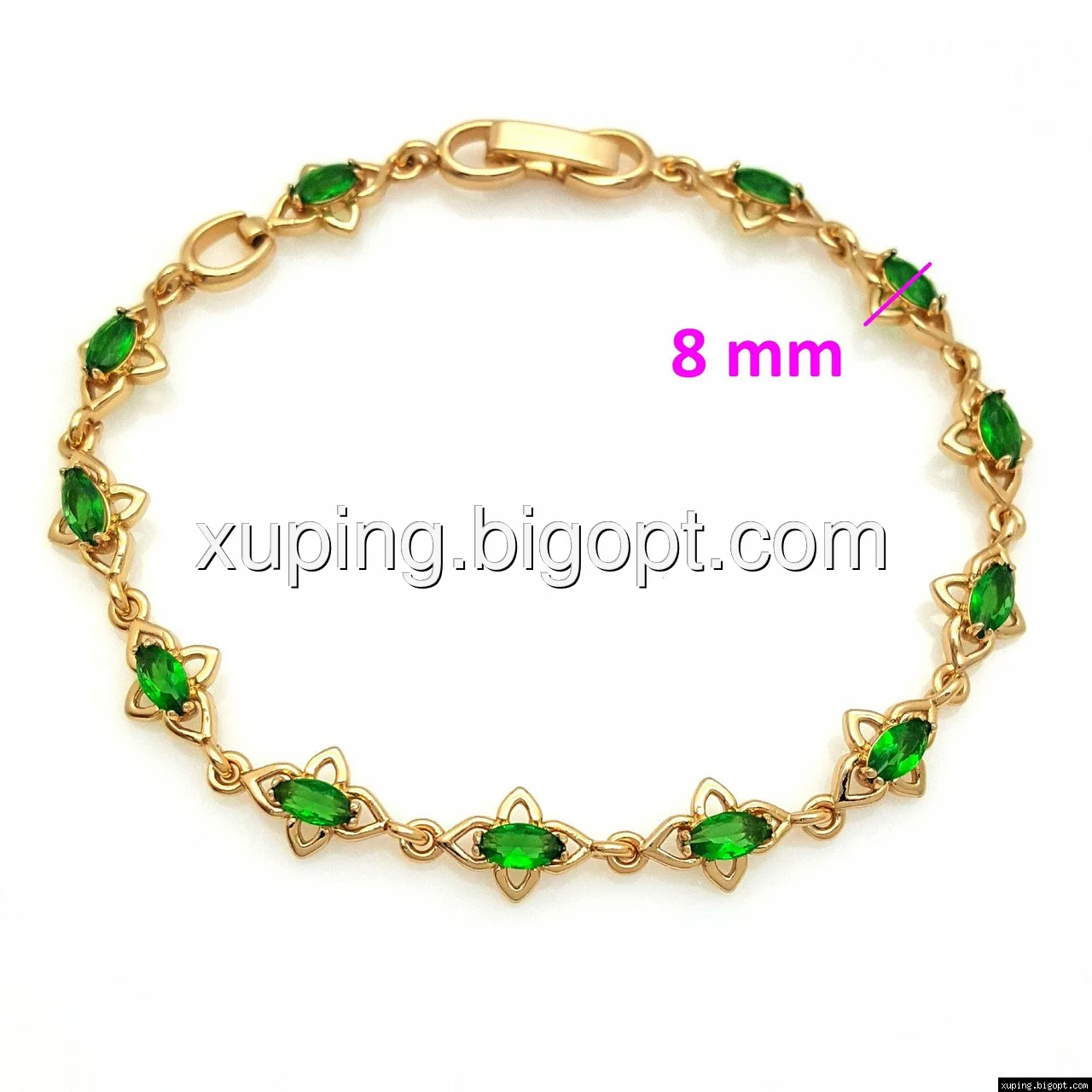 Браслет Цветочная Тропинка с зеленым цирконием, р.17,5, р.19,5, позолота