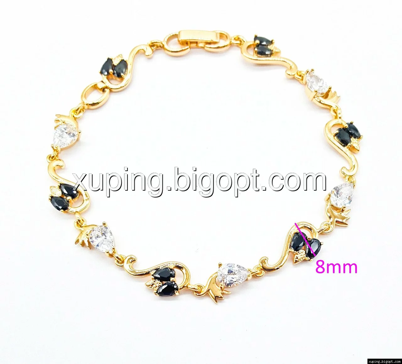 Браслет выполнен из медицинского сплава, который  изготовляется на основе латуни. Сверху бижутерия покрыта позолотой  для того чтобы придать ей насыщенный цвет, яркий блеск и максимальное сходство с золотом. Кроме того, в качестве декора мастера используют цирконий, который крепится при помощи крапанов. Как известно этот камень широко применяется в ювелирном искусстве, так как он обладает восхитительным блеском и прочностью. Данная бижутерия представлена заводом-производителем марки «Xuping» – все изделия оригинальны и имеют одинаково высокое качество.