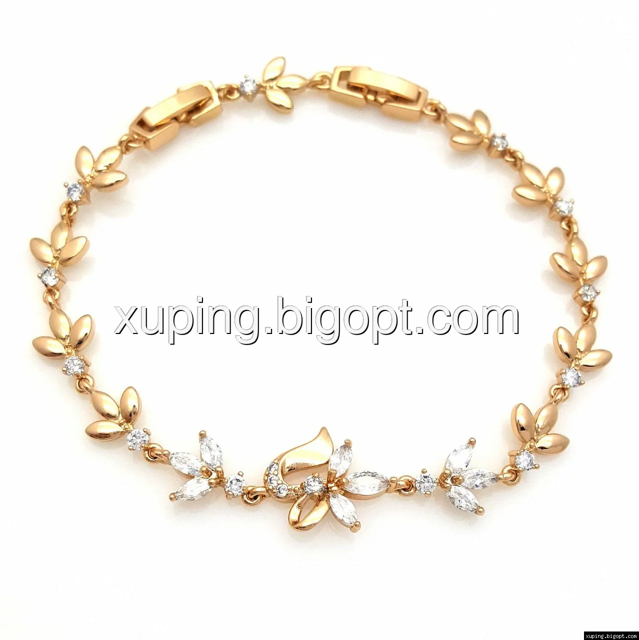Браслет Веточка с цирконием, р.18, р.21, позолота Xuping