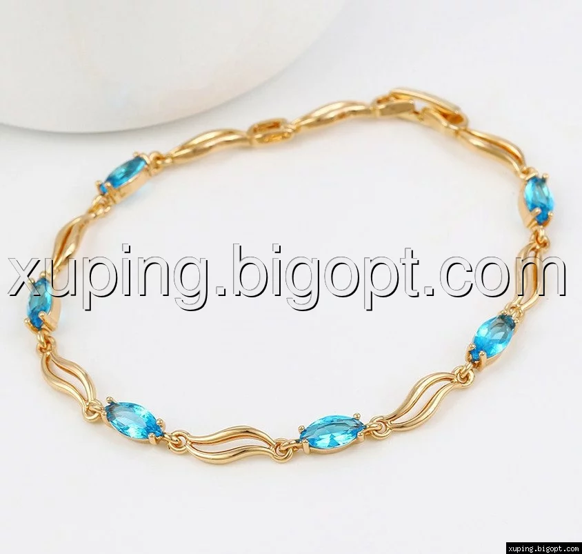 Браслет Волна, с бирюзовым цирконием, р.17,5позолота