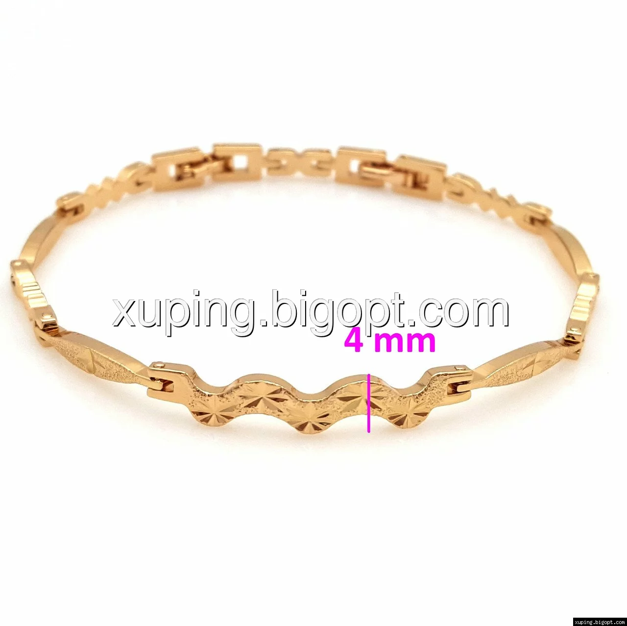 Браслет выполнен из медицинского сплава, который  изготовляется на основе латуни. Сверху бижутерия покрыта позолотой  для того чтобы придать ей насыщенный цвет, яркий блеск и максимальное сходство с золотом. Кроме того, в качестве декора мастера используют цирконий, который крепится при помощи клапанов. Как известно этот камень широко применяется в ювелирном искусстве, так как он обладает восхитительным блеском и прочностью. Данная бижутерия представлена заводом-производителем марки «Xuping» – все изделия оригинальны и имеют одинаково высокое качество.