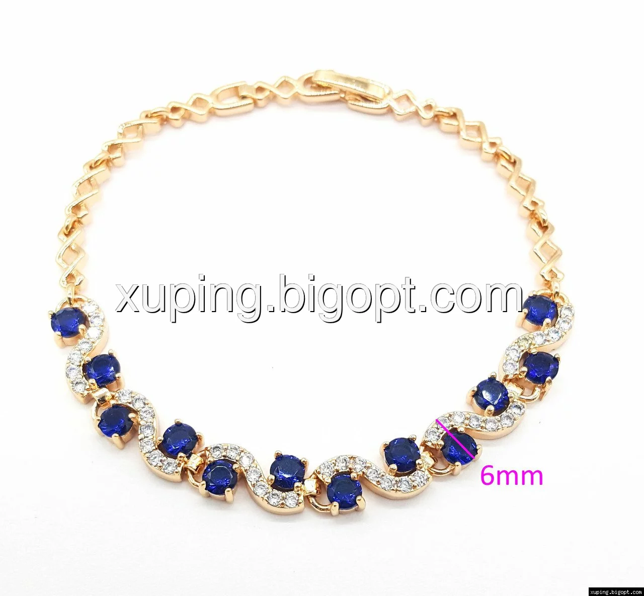 Браслет выполнен из медицинского сплава, который  изготовляется на основе латуни. Сверху бижутерия покрыта позолотой  для того чтобы придать ей насыщенный цвет, яркий блеск и максимальное сходство с золотом. Кроме того, в качестве декора мастера используют цирконий, который крепится при помощи крапанов. Как известно этот камень широко применяется в ювелирном искусстве, так как он обладает восхитительным блеском и прочностью. Данная бижутерия представлена заводом-производителем марки «Xuping» – все изделия оригинальны и имеют одинаково высокое качество.