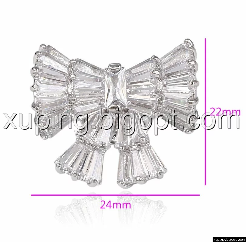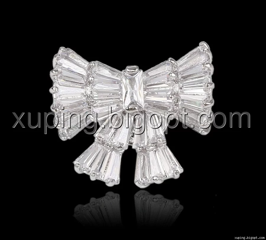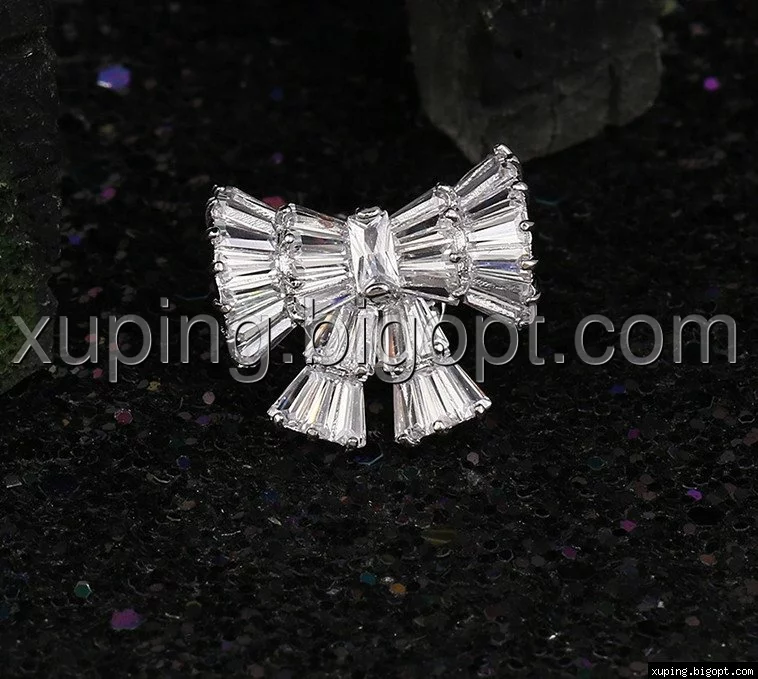 Брошка родована, Бант з багетним цирконієм, Xuping