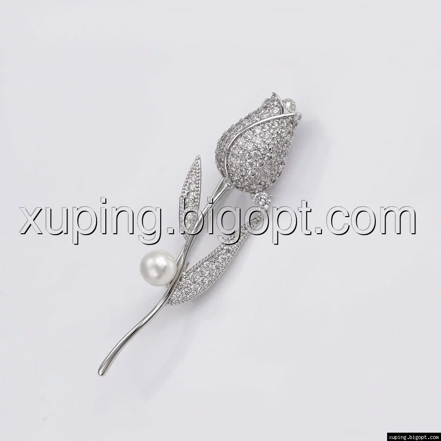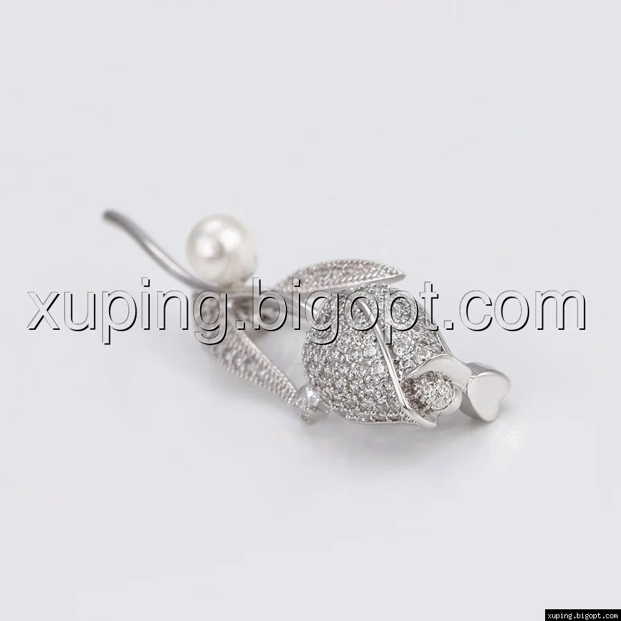 Брошка родій, Ніжна троянда з перлиною, Xuping