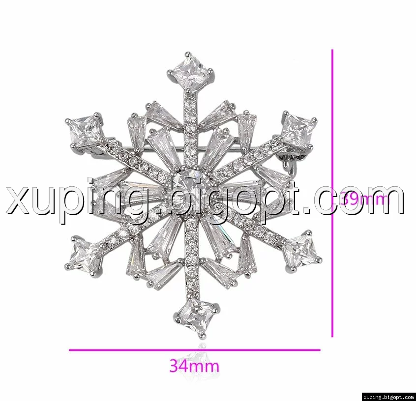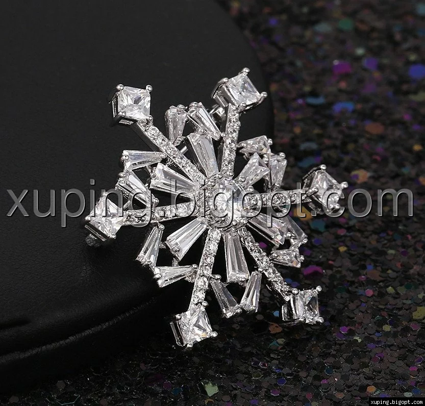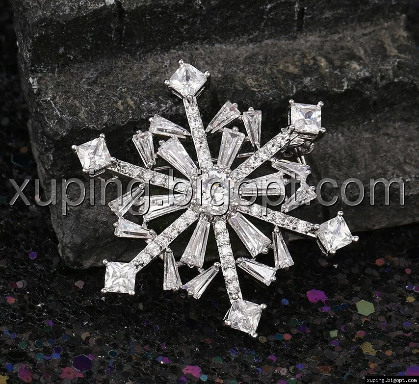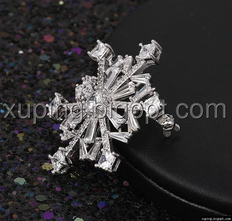 Брошка родована, Сніжинка з багетним цирконієм, Xuping