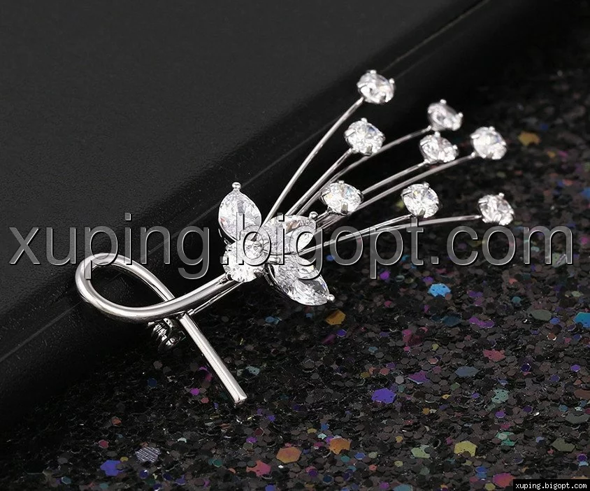 Брошка виконана з медичного сплаву на основі титану з додаванням легуючих  елементів, з метою поліпшення будь-яких її властивостей, наприклад корозійної стійкості або міцності. Такий сплав не викликає алергії, не вступає в реакцію з потом людини, не змінює свої властивості під впливом солоної води і сонця. Поверхня ланцюжка покрита родієм щоб надати їй яскраво-білий колір і додатково захистити від пошкоджень.