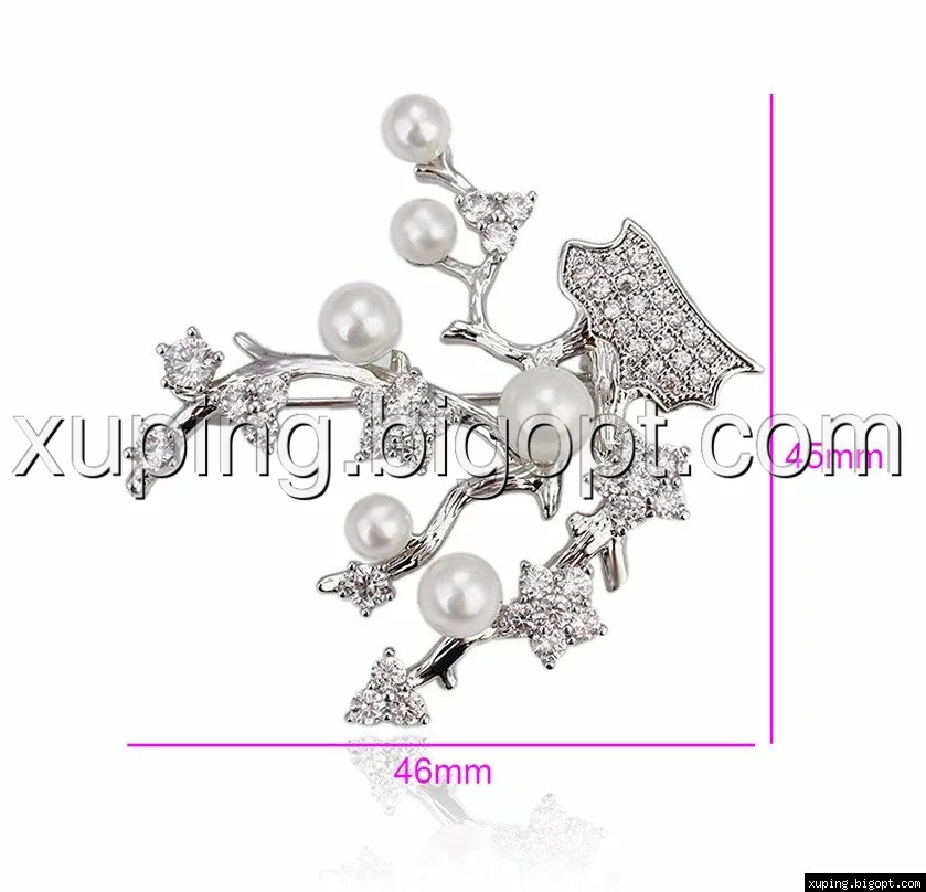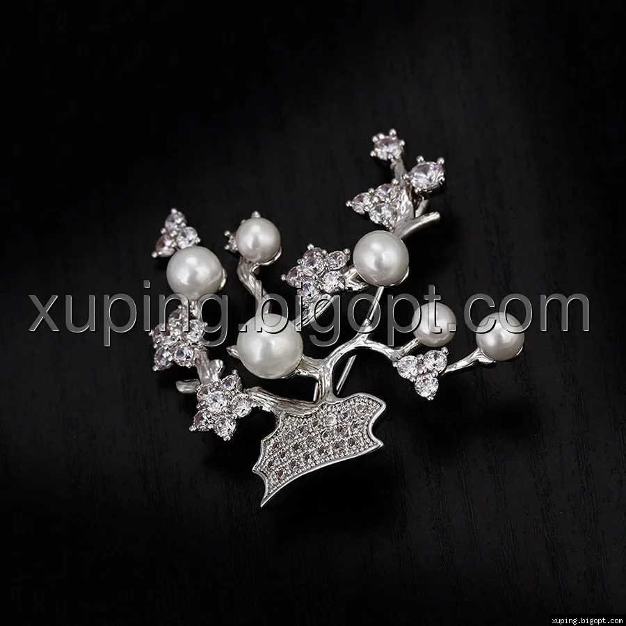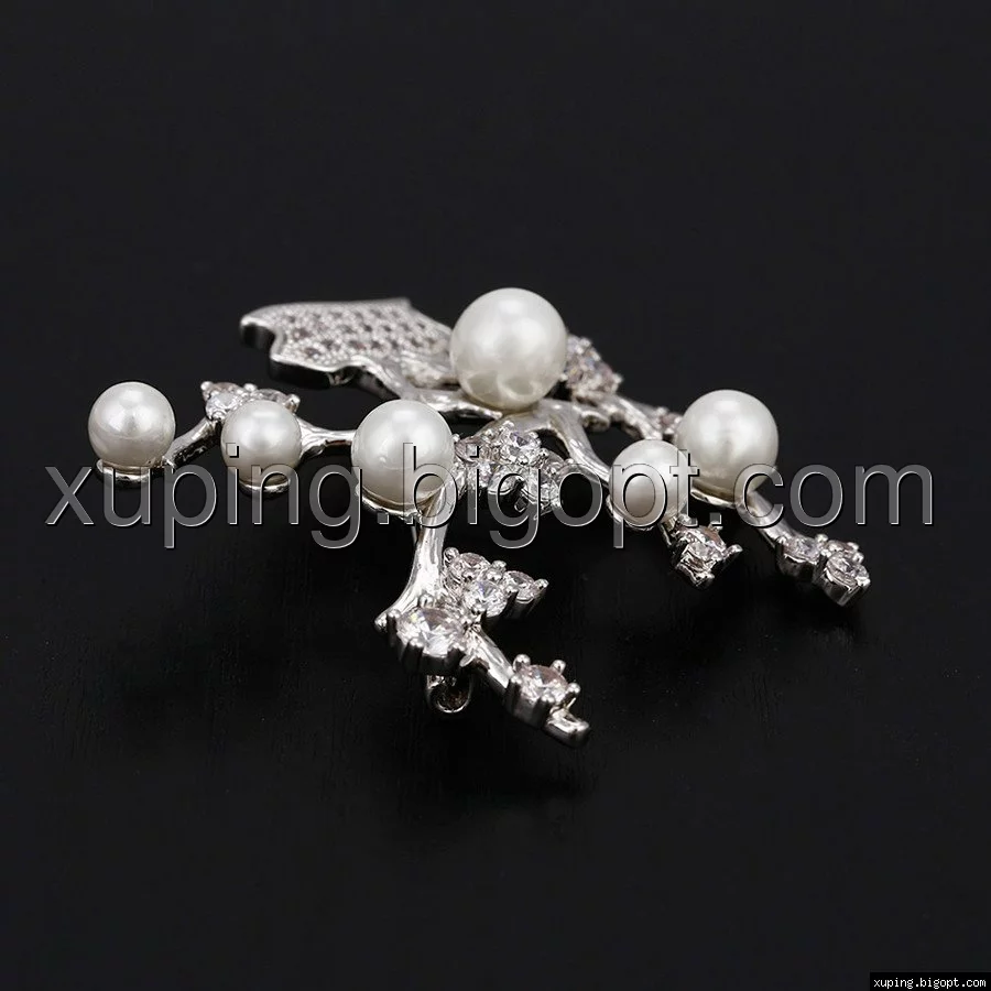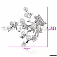 Брошка родована, Гілочка з перлами і камінчиками цирконію, Xuping