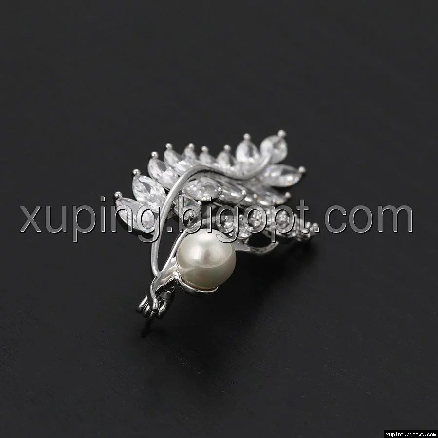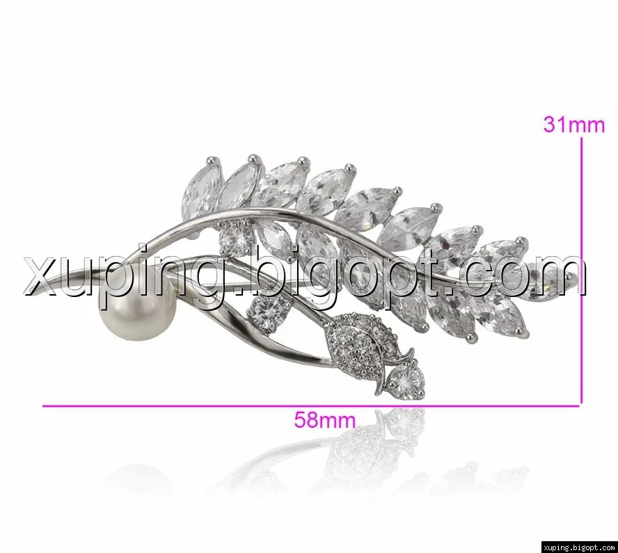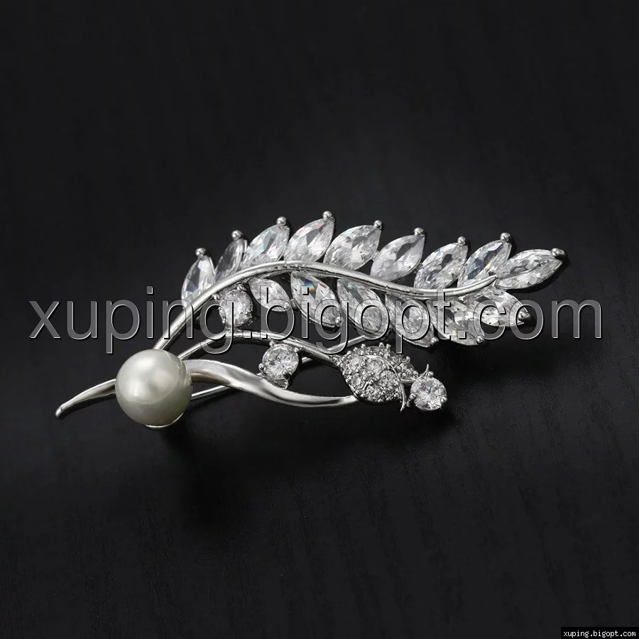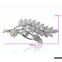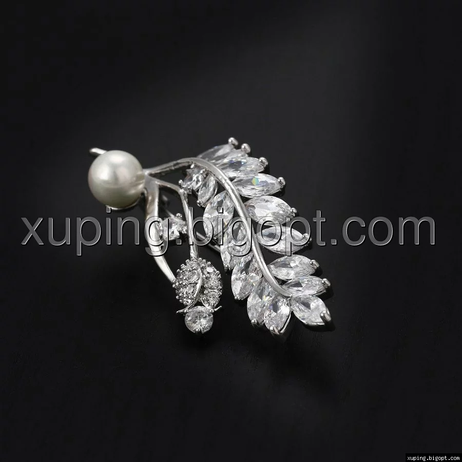 Брошка Гілочка з цирконію і перлиною, родій Xuping