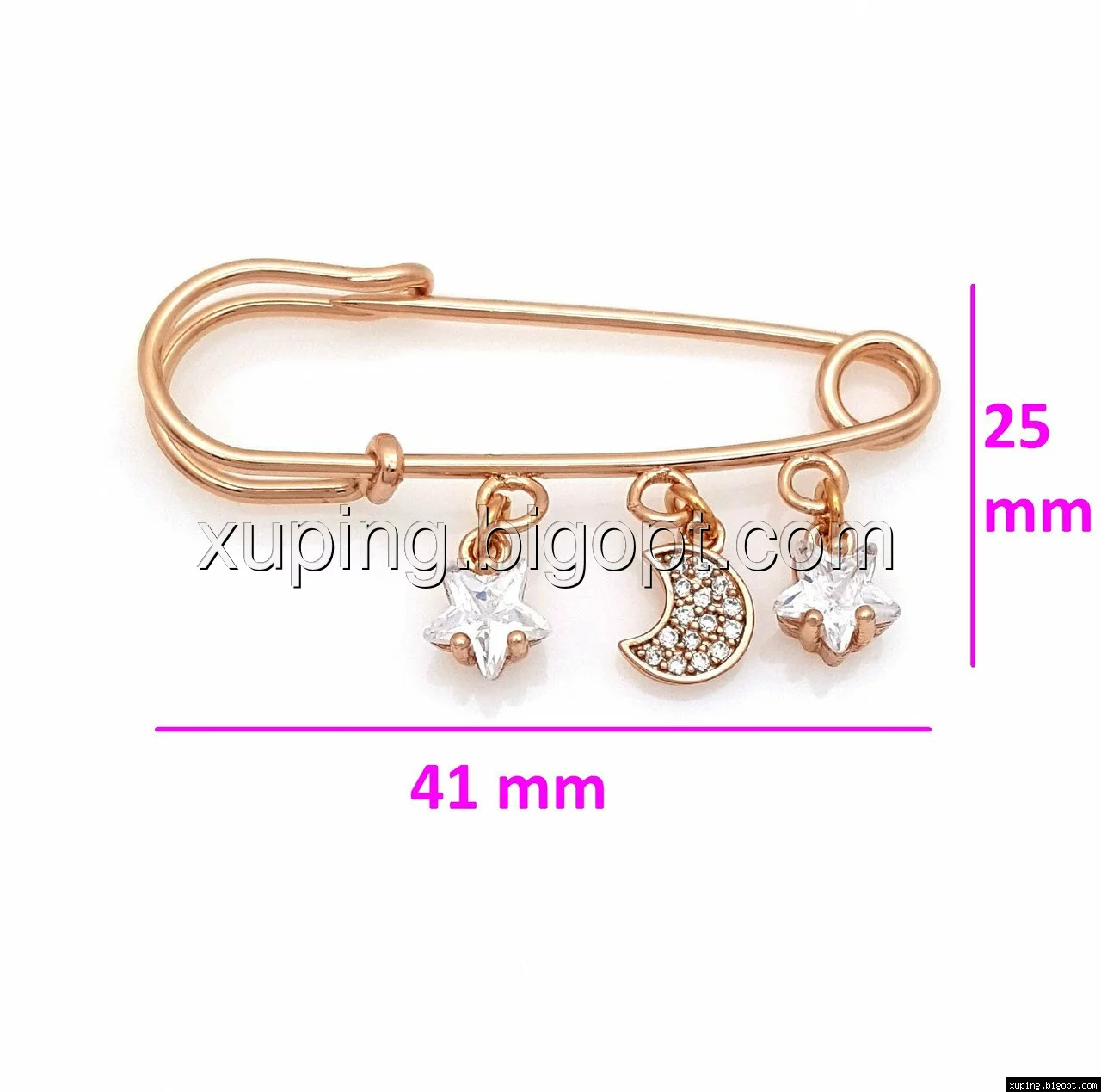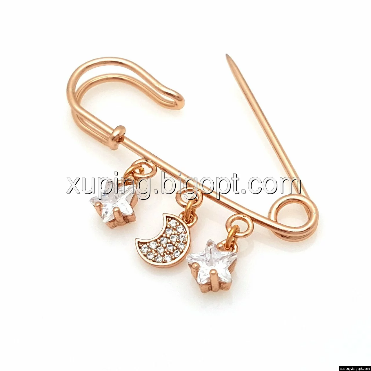 Булавка позолоченная, Луна со Звездами, вставка цирконий