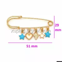 Булавка позолоченная, с висюльками, без камней с бирюзовой эмалью