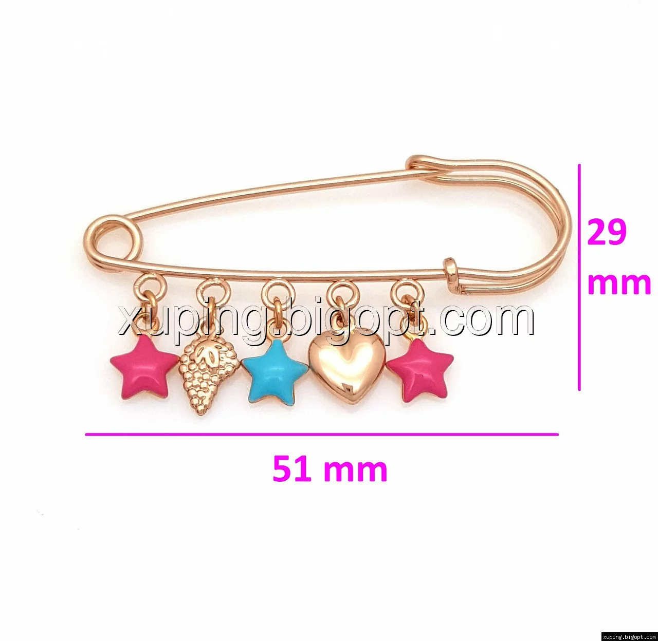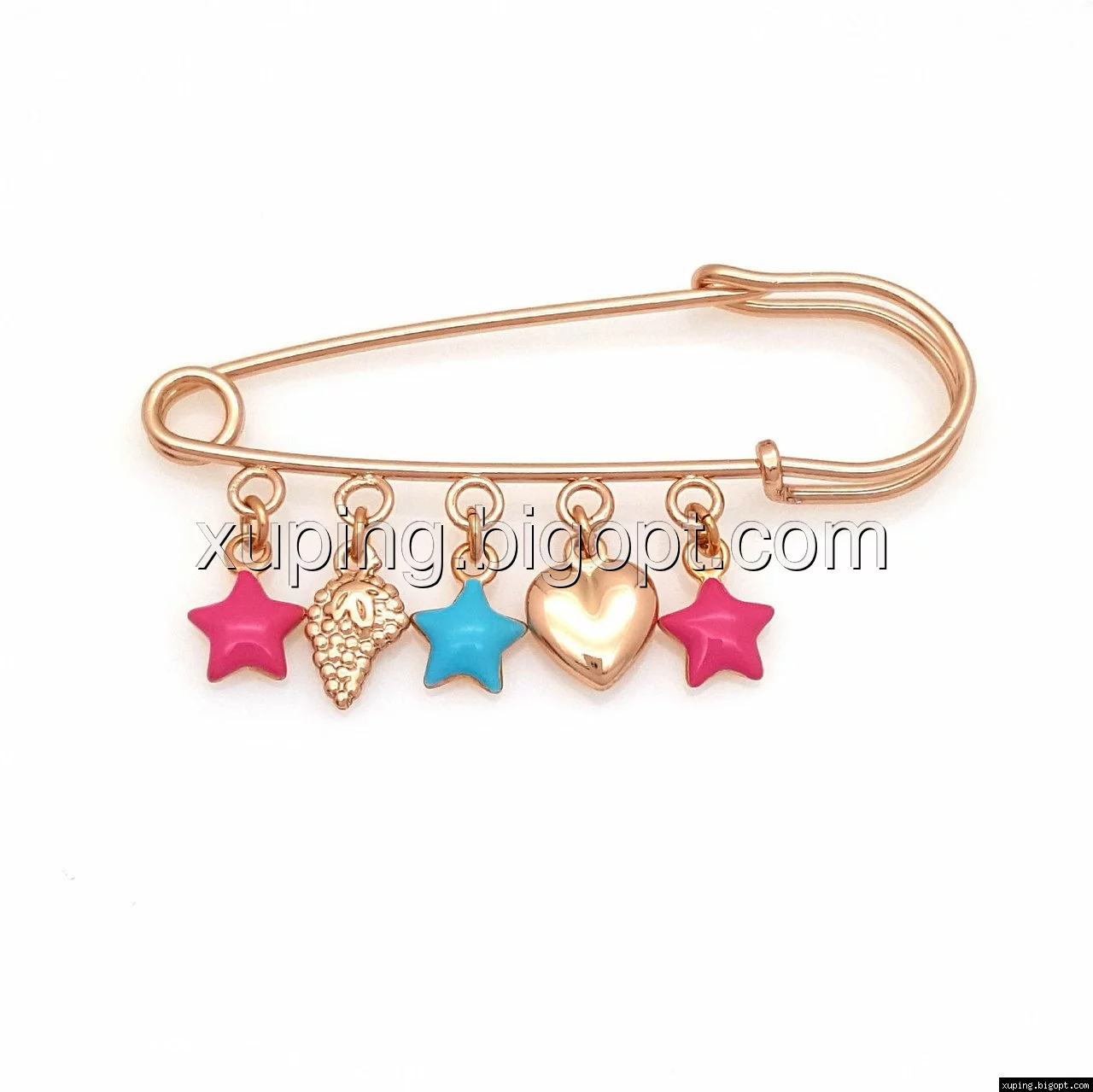 Шпилька позолочена, Зірочки з малиновою і бірюзовою емаллю, Xuping