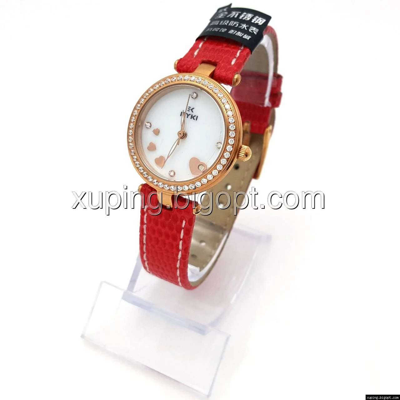 Часы EYKI Золотистые на красном ремешке, длина 15-19см, циферблат 27мм