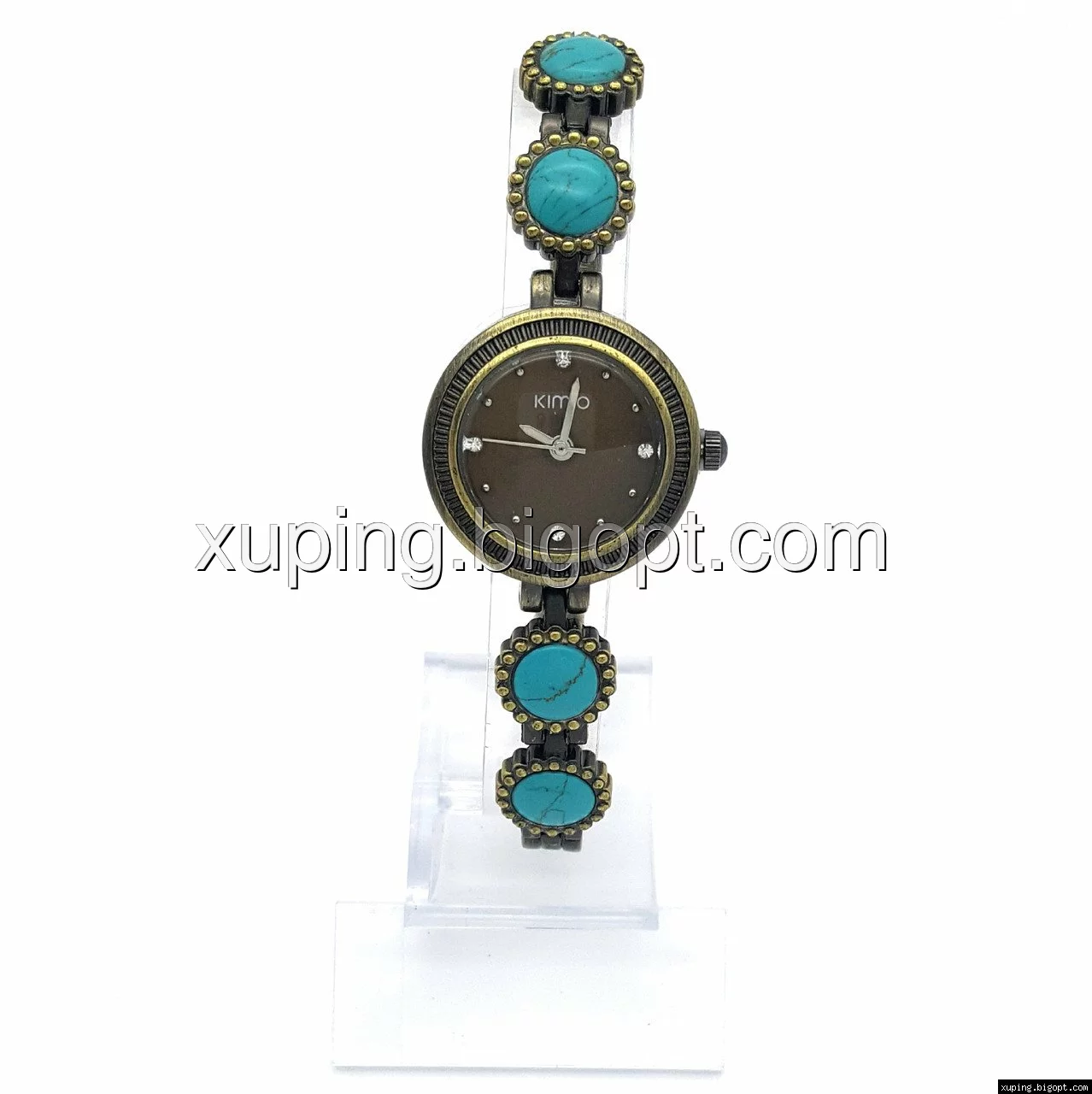 Часы KIMIO на браслете с бирюзовыми камнями, длина браслета 20, циферблат 25мм