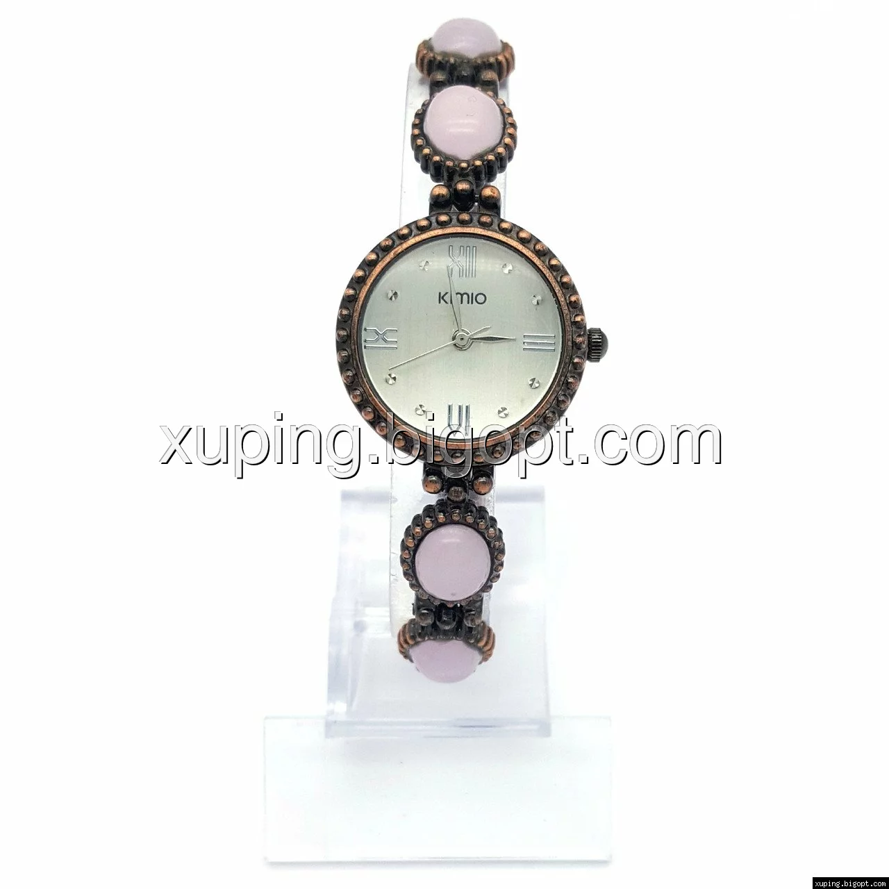 Часы KIMIO на браслете, вставка: розовый камень, длина браслета 20, циферблат 25мм