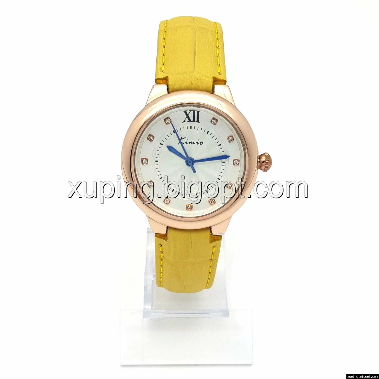 Часы KIMIO на желтом ремешке, циферблат со стразами, длина ремешка 17-23см, циферблат 34мм