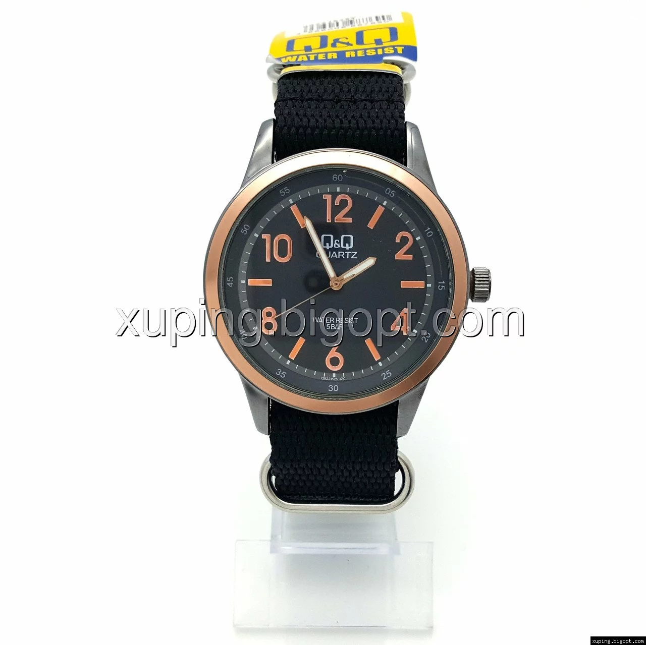 Часы QQ на черном тканевом ремешке, длина 17-23,5см, циферблат 44мм