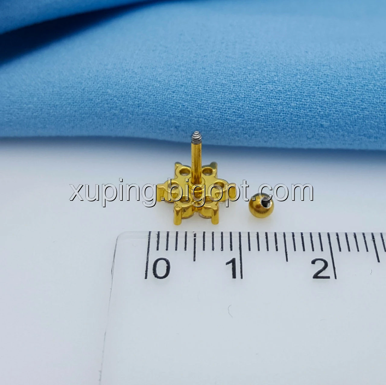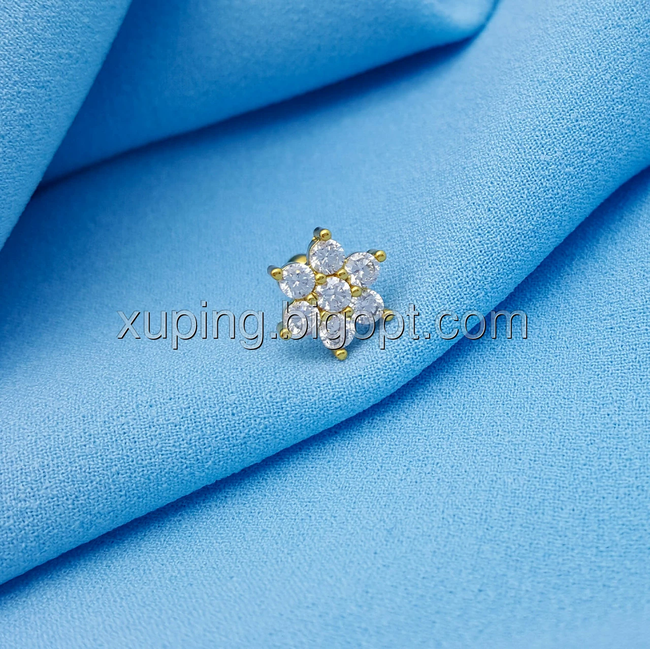 Дизайнерський пірсинг, Квітка з камінчиками на закрутці, під золото