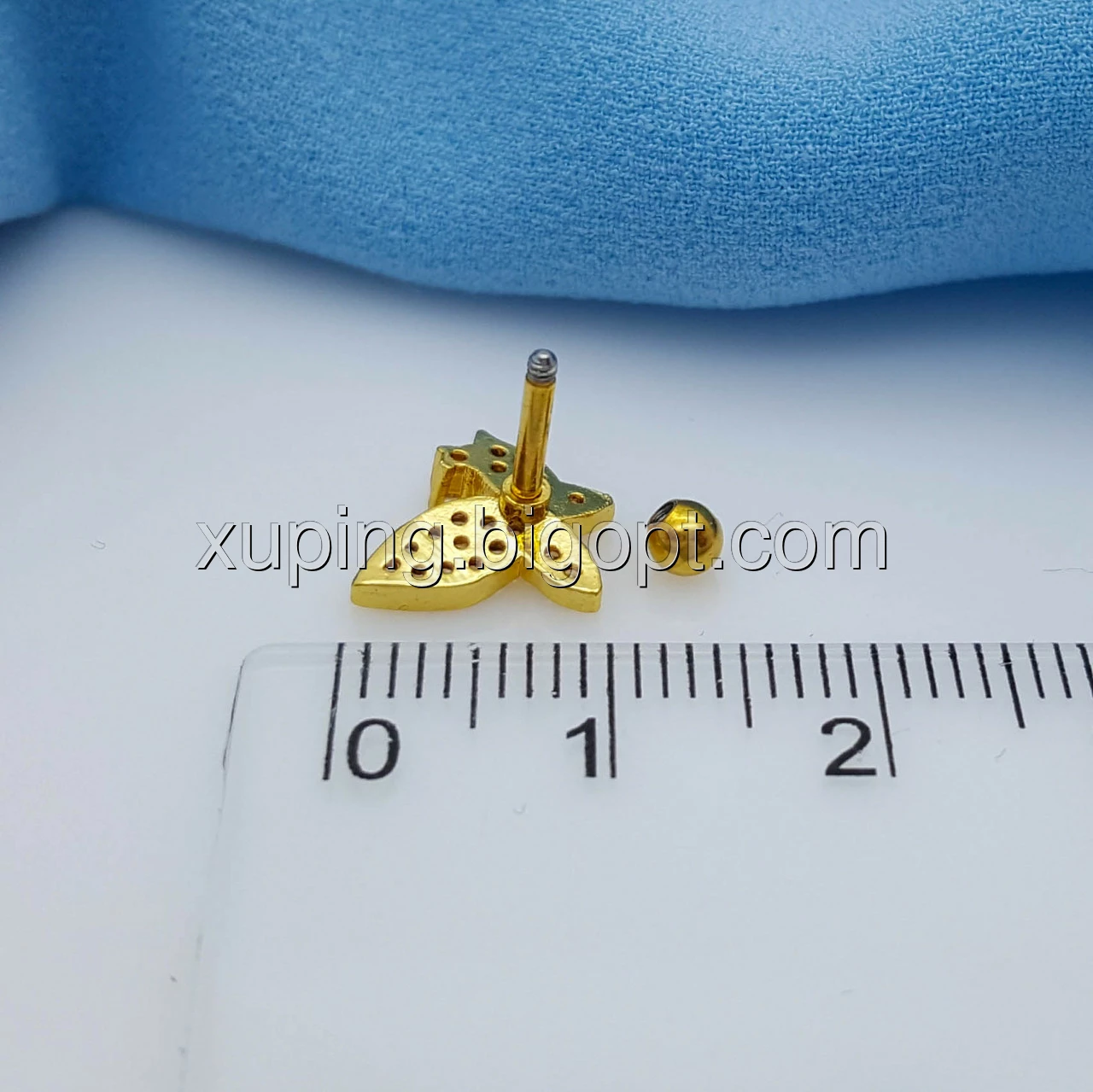 Дизайнерський пірсинг, Метелик в камінчики, на закруточці, під золото