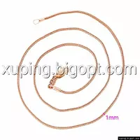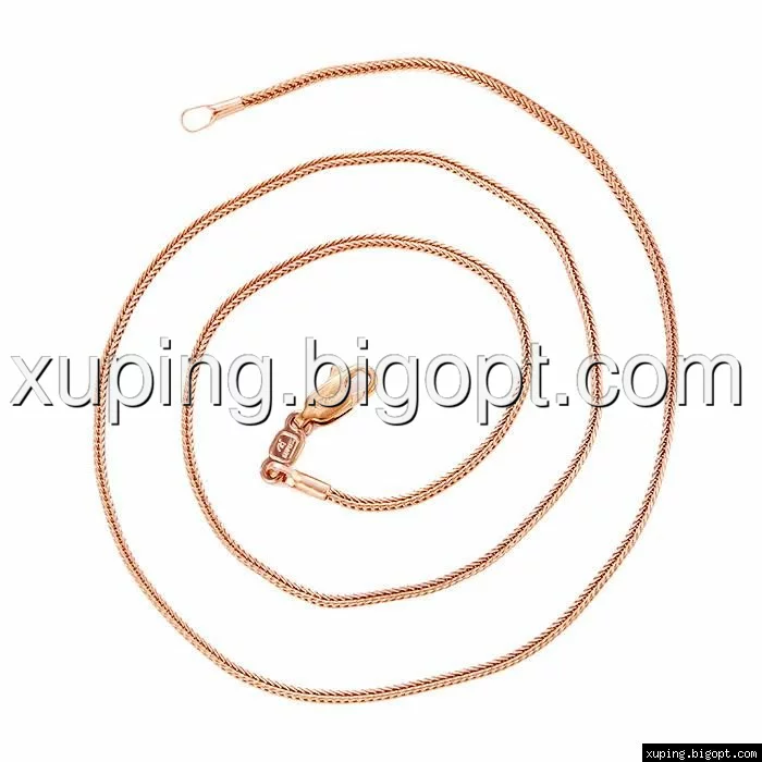 Цепочка выполнена из медицинского сплава на основе латуни с добавлением легирующих елементов, с целью улучшения каких-либо ее свойств, например коррозионной стойкости или прочности. Такой сплав не вызывает аллергии, не вступает в реакцию с потом человека, не меняет свои свойства под воздействием соленой воды и солнца. Поверхность цепочки покрыта золотом 18 карата.