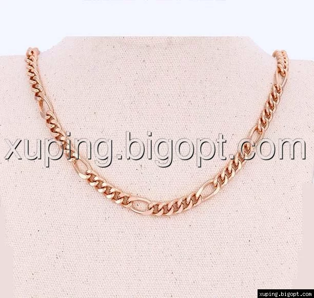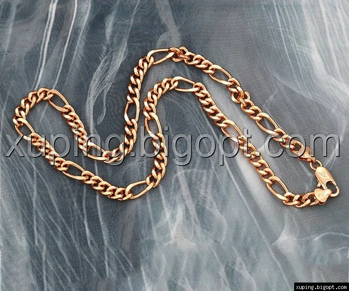 Цепочка выполнена из медицинского сплава на основе латуни с добавлением легирующих елементов, с целью улучшения каких-либо ее свойств, например коррозионной стойкости или прочности. Такой сплав не вызывает аллергии, не вступает в реакцию с потом человека, не меняет свои свойства под воздействием соленой воды и солнца. Поверхность цепочки покрыта золотом 14 карата.