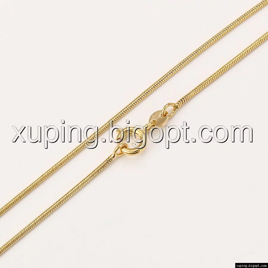 Цепочка выполнена из медицинского сплава на основе латуни с добавлением легирующих элементов, с целью улучшения каких-либо ее свойств, например коррозионной стойкости или прочности. Такой сплав не вызывает аллергии, не вступает в реакцию с потом человека, не меняет свои свойства под воздействием соленой воды и солнца. Поверхность цепочки покрыта золотом 18 карата.