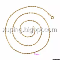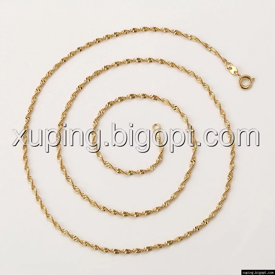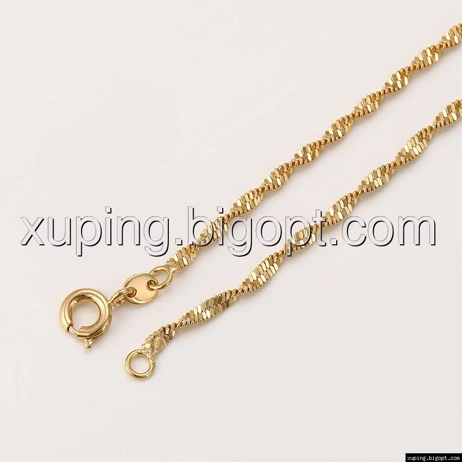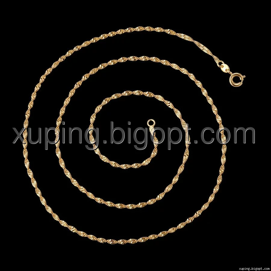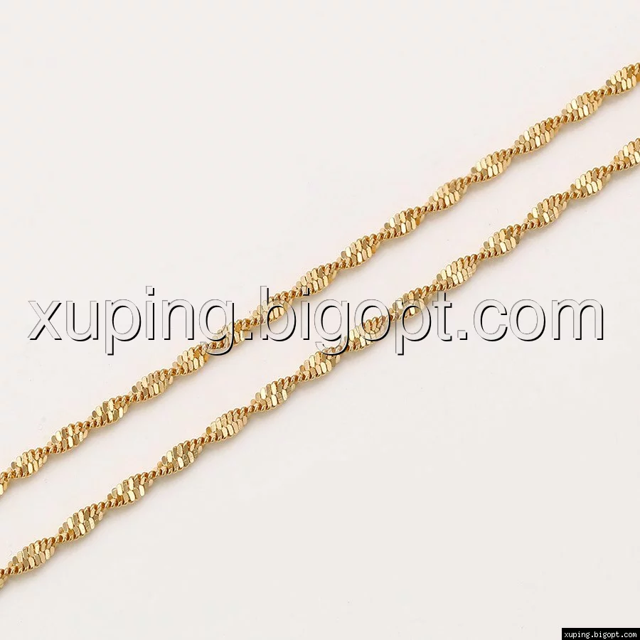Цепочка выполнена из медицинского сплава на основе латуни с добавлением легирующих элементов, с целью улучшения каких-либо ее свойств, например коррозионной стойкости или прочности. Такой сплав не вызывает аллергии, не вступает в реакцию с потом человека, не меняет свои свойства под воздействием соленой воды и солнца. Поверхность цепочки покрыта золотом 18 карата.